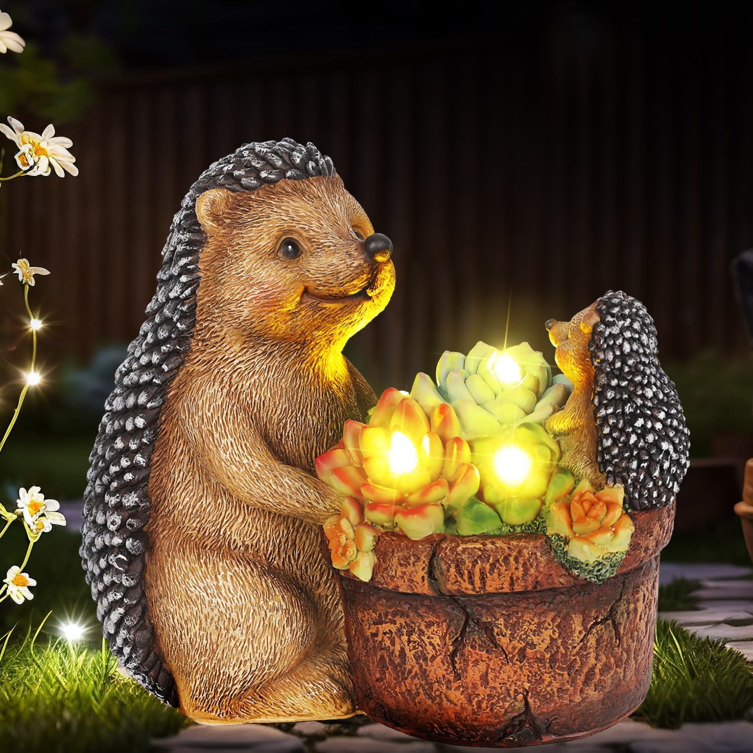 - Cute Design:Lovely hedgehogs with succulents and warm white lights can bring a cheerful atmosphere to your home, no matter where you place it.