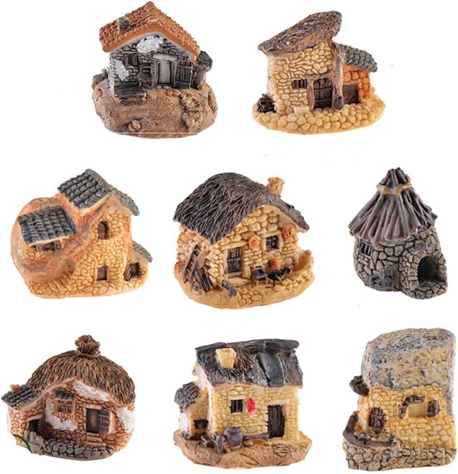 8 Pack Miniature Fairy Garden Stone House, Resin Village House Fairy Garden Kits Figurines, Mini Fairy Cottage House Fairy Garden Kits Dollhouse Supplies DIY Outdoor Decorations, Plant Pot Micro Land