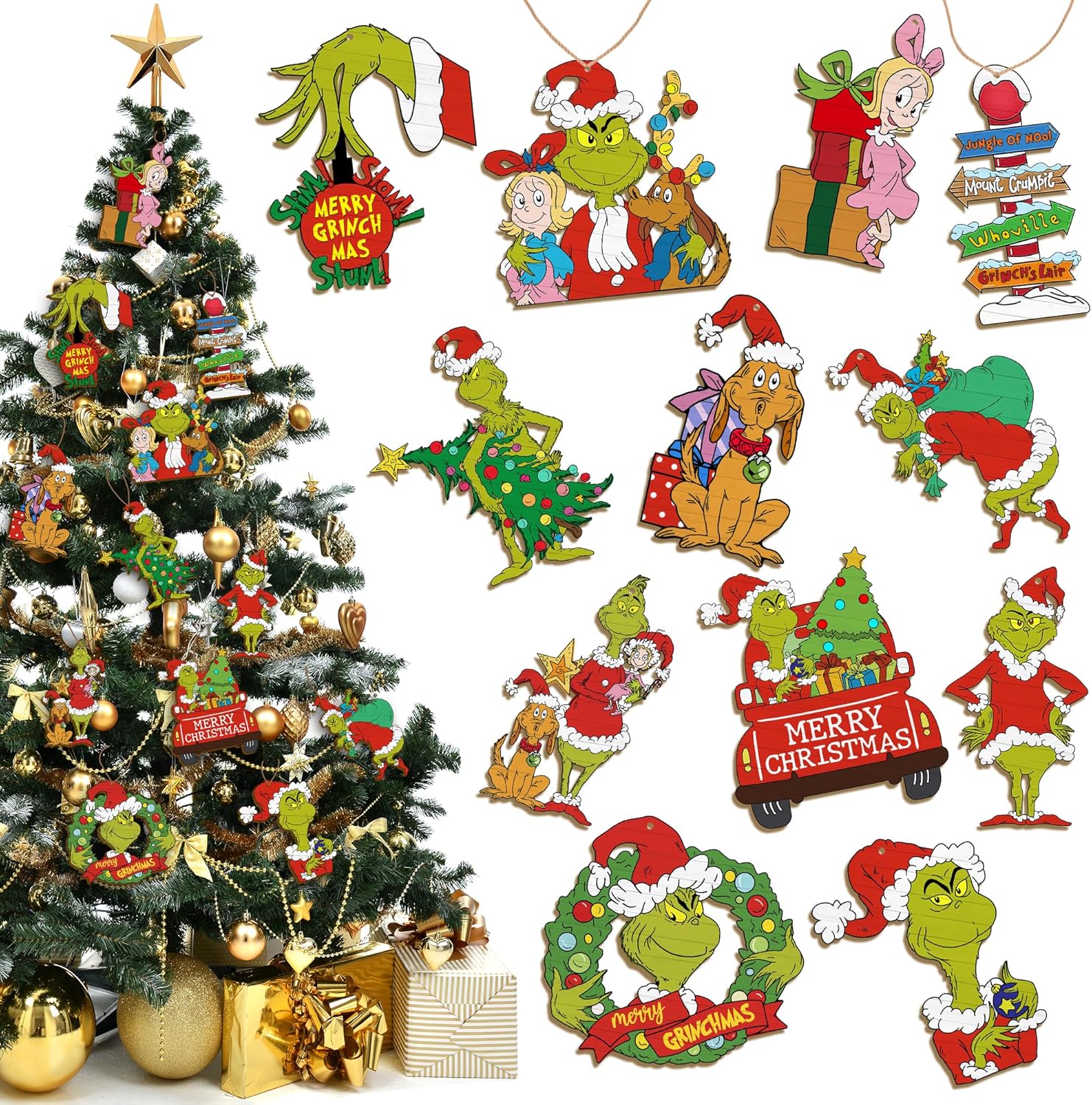 24 PCS Christmas Ornaments for Tree,Funny Green Christmas Tree Decorations Xmas Home Party Decor