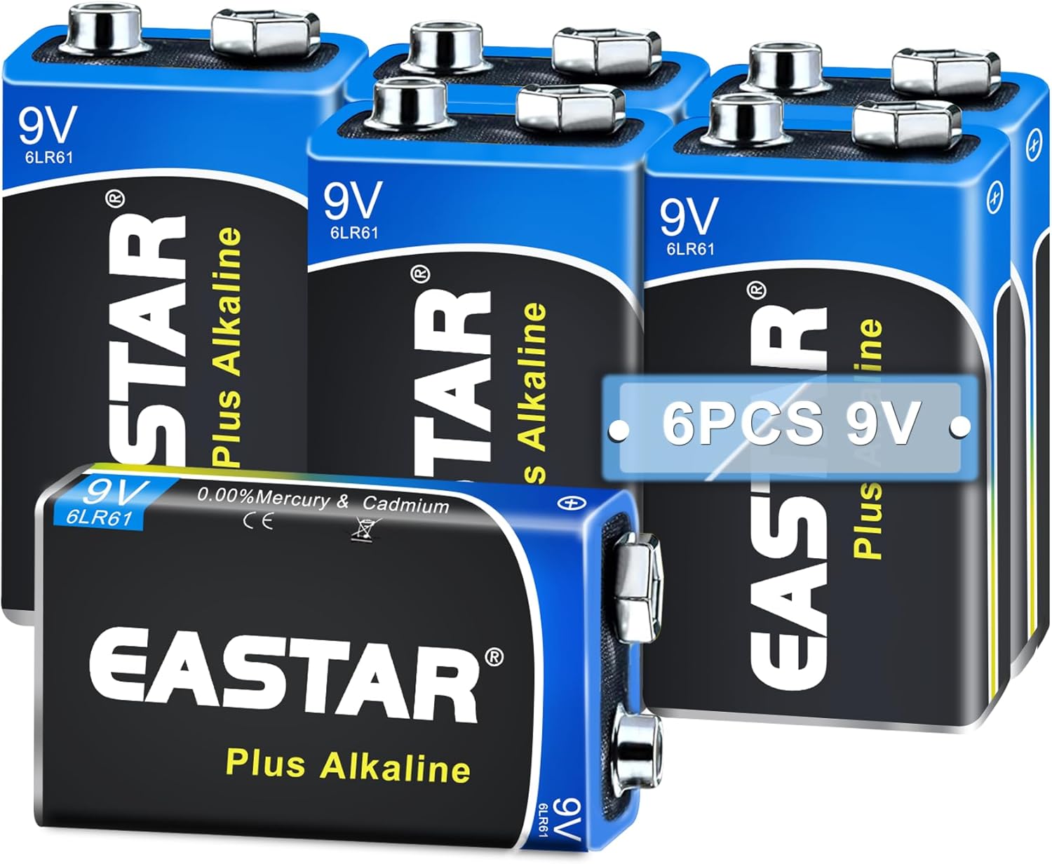 9V Batteries – Alkaline 9 Volt Batteries (6 Pack) for Smoke Detectors, Long-Lasting Power for Low Drain Devices, 10-Year Shelf Life, All-Purpose Square Batteries 6LR61 for Household Office