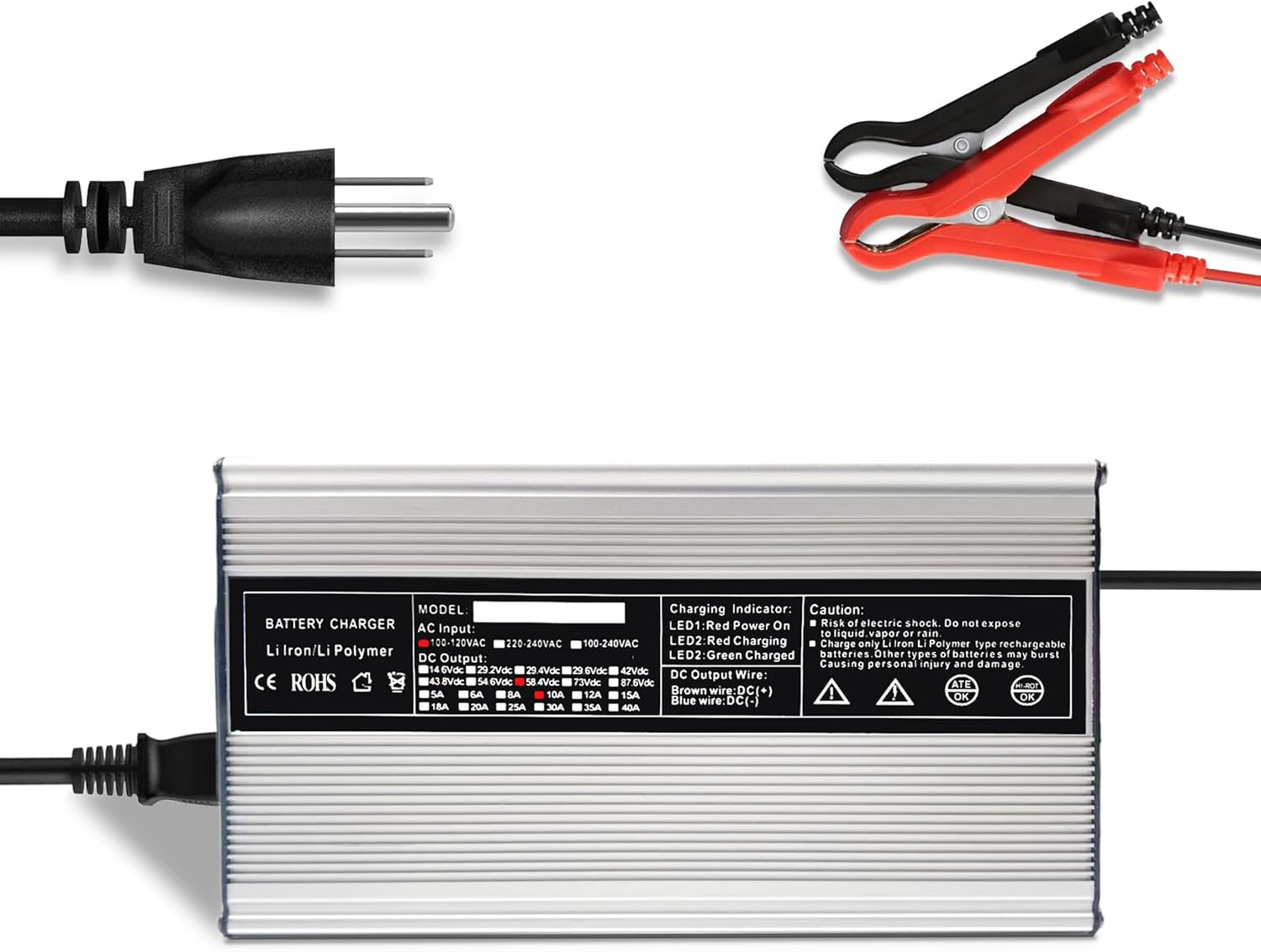 58.4V 10A, AC-DC Battery Charger, Dedicated Best Solution for 48V Lithium Iron Phosphate, LiFePO4 Battery Recharging Support Charging Solar Off-Grid, Backup Power, RV Marine Trolling Motor Lawn Mower