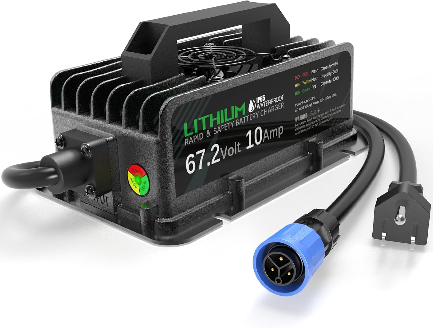 67.2V 10A Fast Battery Charger for Talaria Sting 4000 Series X3 L1E X3C MX3/MX4, Waterproof 3-Prong Power Supply Adapter with Cooling Fan, Efficient eBike Charger