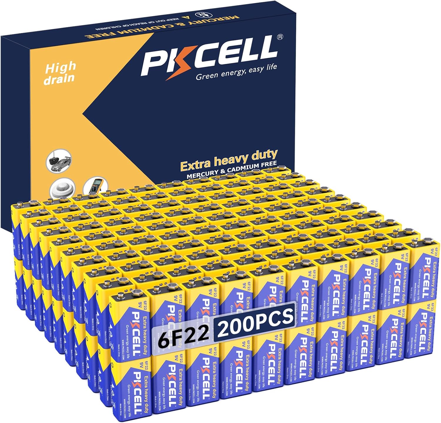 9V 6F22 Batteries High-Power Batteries Long Battery Life 9 Volt Carbon Batteries 3 Years Shelf Life, Leak-Proof 9V Batteries Suitable for Smoke Detectors and Other Electronic Products (200-Counts)