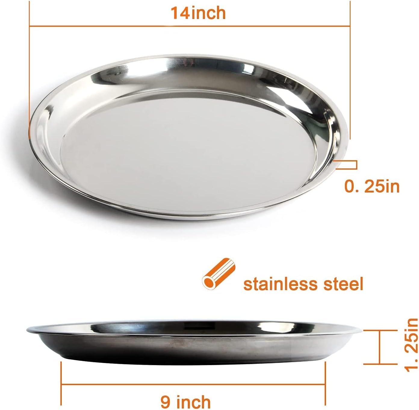 Specification: 14 In Stainless Steel Roasting Pan, Stainless Steel Heavy Duty Kitchenware Round Roaster Pan Large XLarge Big Green Egg Drip Pan for Turkey Baking,Roast Chicken,Brushed Surface & Dishwasher Safe