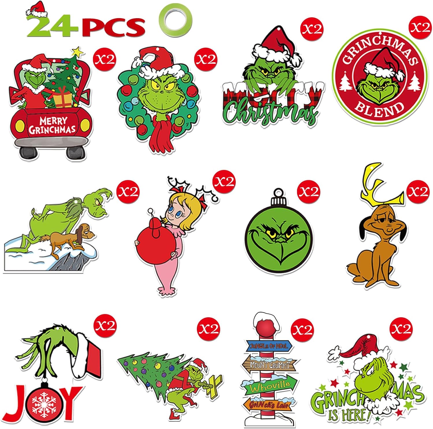 24 PCS Christmas Ornaments for Tree,Funny Green Christmas Tree Decorations Xmas Home Party Decor