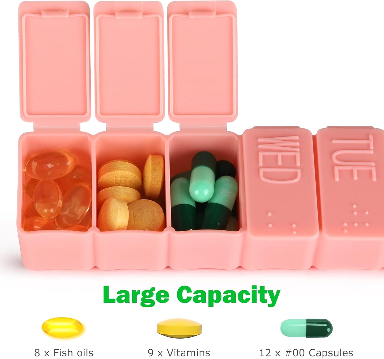 Specification: 2Pack Weekly Pill Organizer,7 Days Pill Cases Travel Daily Pill Box Medicine Organizer Pill Box 7 Day Pill Organizer Weekly for Fish Oil, Calcium Tablets Supplements (Pink+Beige)