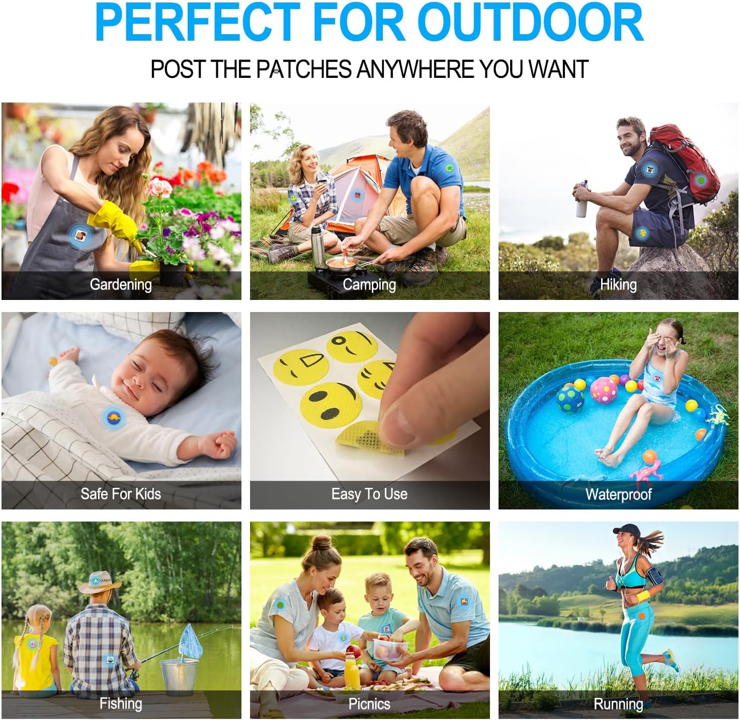Easy to Use: You just stick the mosquito repellent patches on hat, cloth, pant, sock, shoe, bag, cup, table, sofa, stroller, toy, tent and anywhere you want. Protect you from mosquitoes in all aspects!