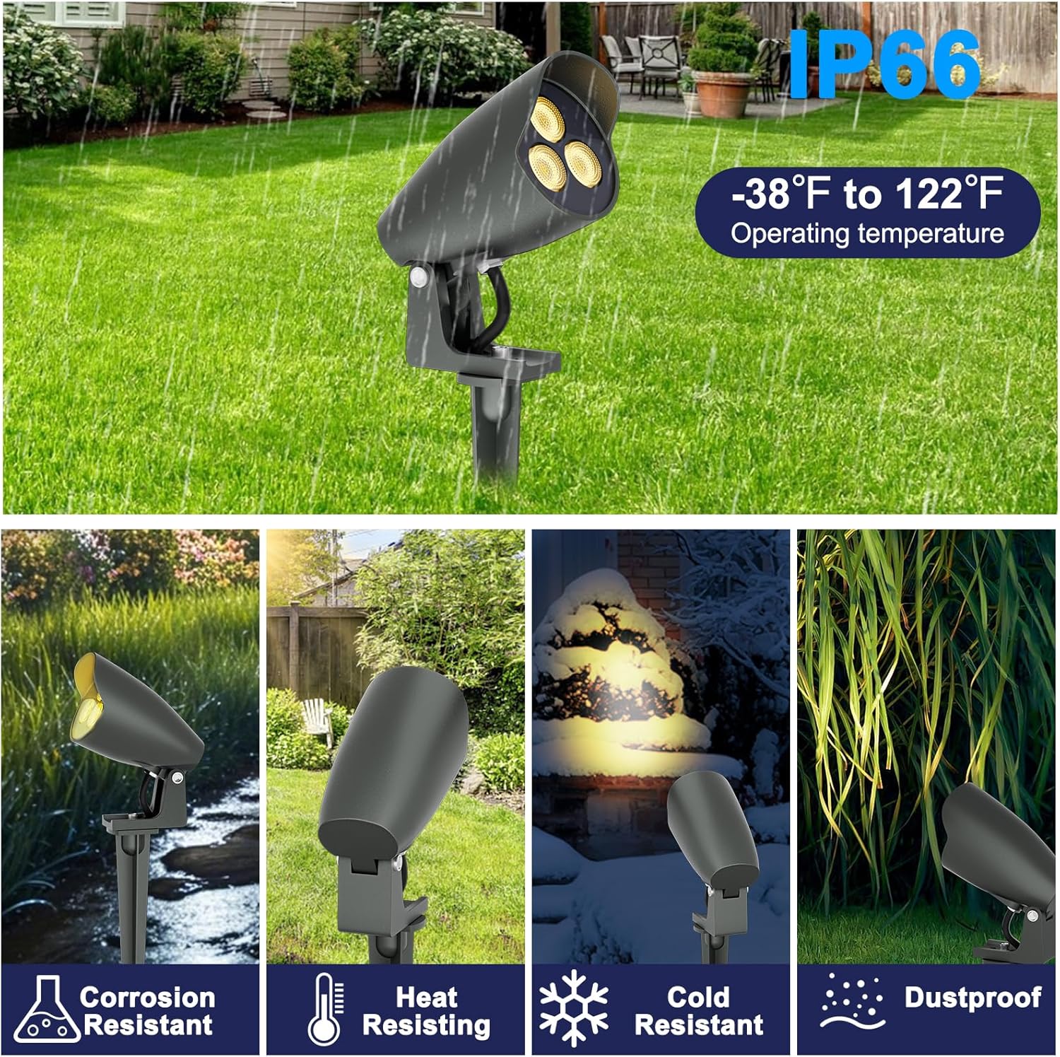 Specification: 6W 3500K 12V Low Voltage Landscape Lighting, IP66 Waterproof Rating LED Outdoor Spotlights, Solid Die Casting Alloy Landscape Spotlights for Courtyard Garden Building(2 PCS)