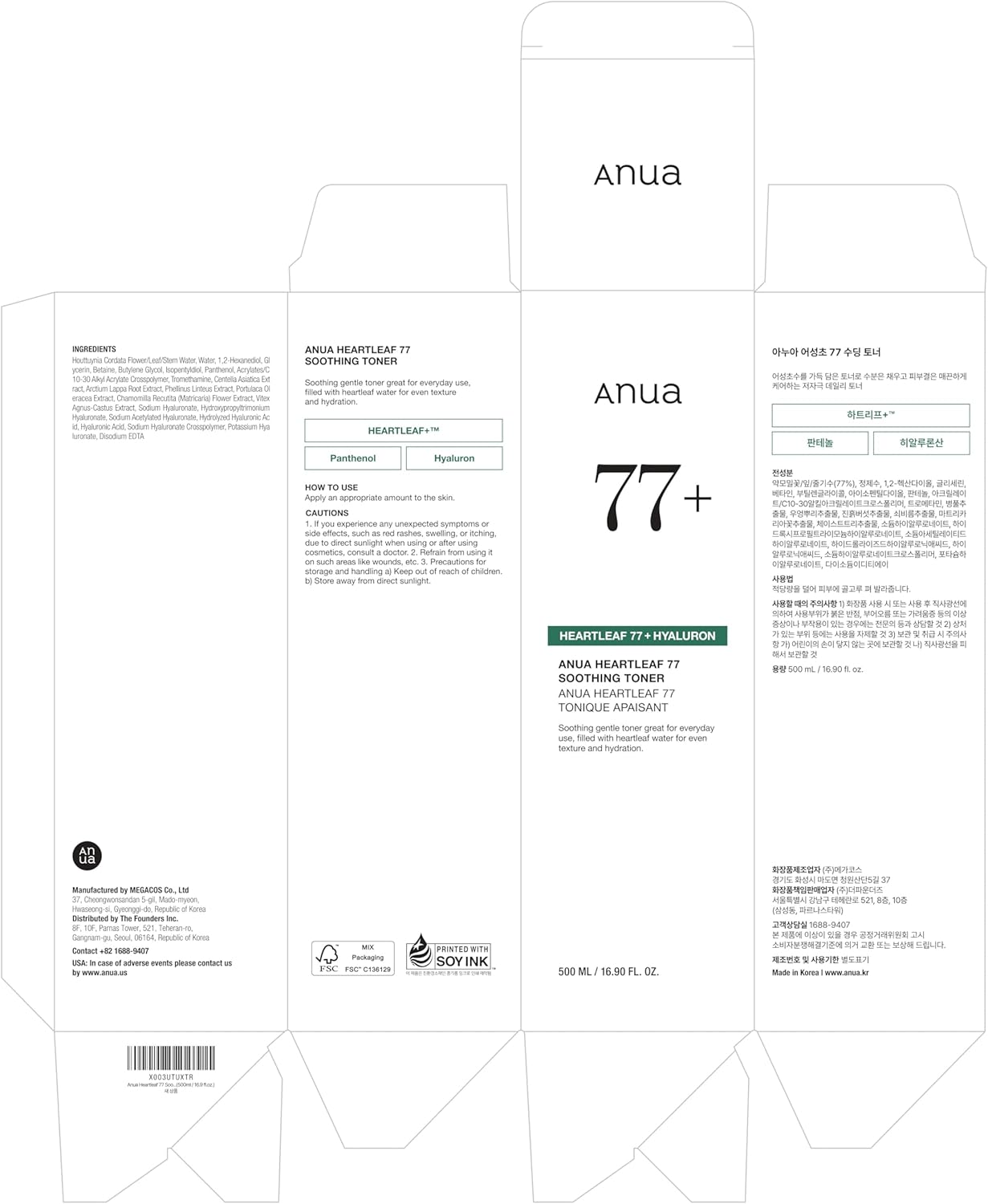 Specification: Anua Heartleaf 77 Soothing Toner I pH 5.5 Skin Trouble Care, Calming Skin, Refreshing, Purifying (500ml / 16.9 fl.oz.)