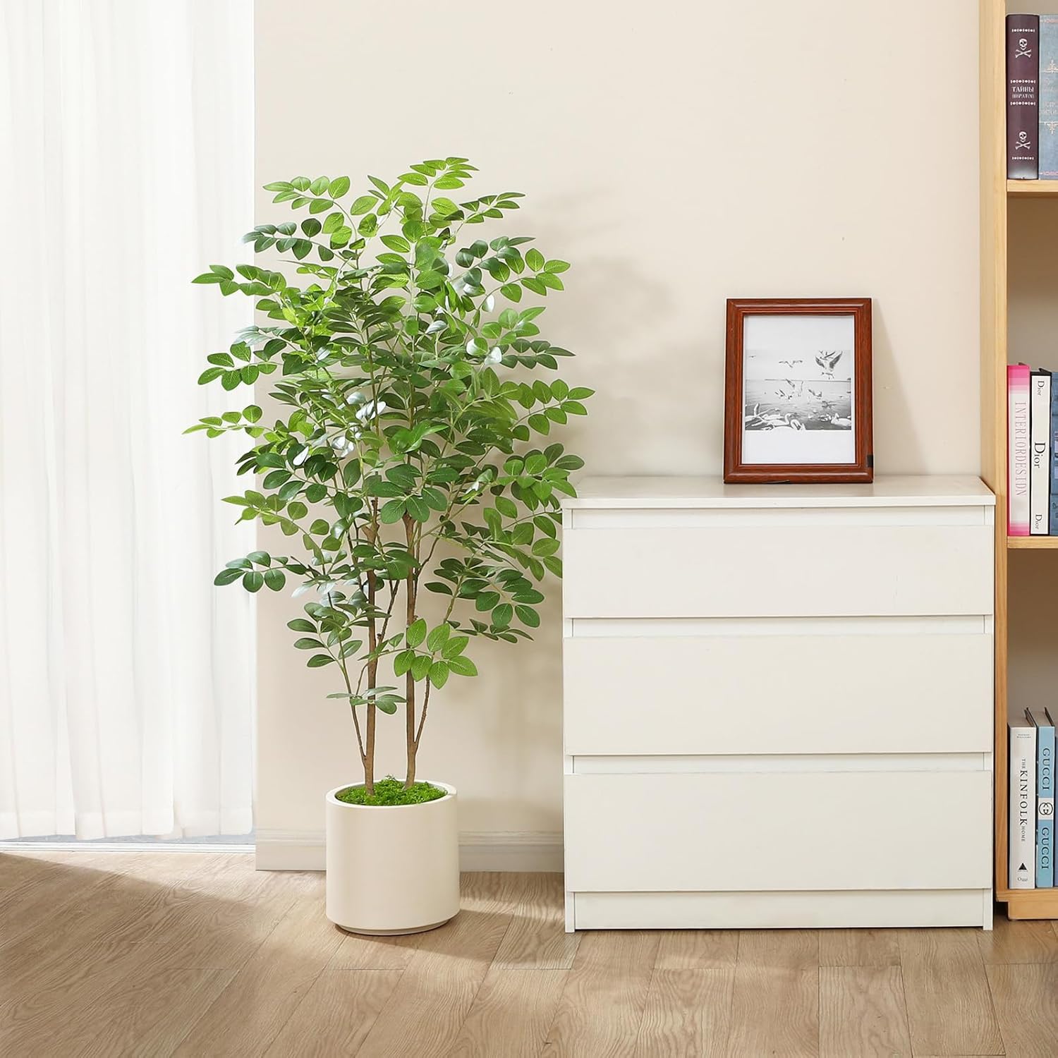 Specification: Artificial Moringa Tree 4FT Tall Fake Plant Artificial Trees with White Planter for Home Decor Indoor Faux Silk Moringa Floor Plant with Green Fake Moss for Office Living Room Housewarming Gift