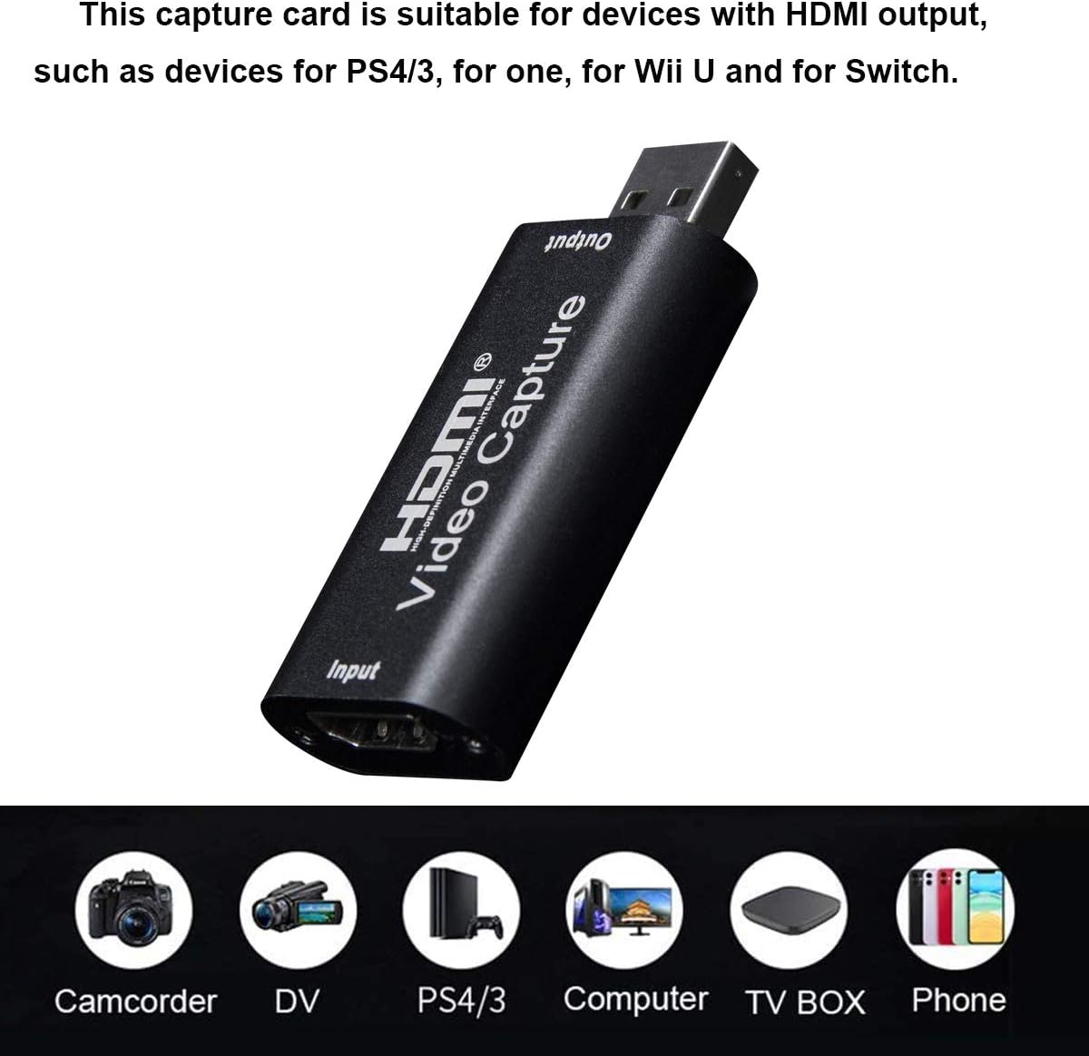 Specification: Audio Video Capture Cards,1080p30hz HDMI to USB 2.0 Capture Recording Box Compatible with Windows Linux Mac OS System YouTube OBS VLC Amcap for PS4/ Xbox/DSLR