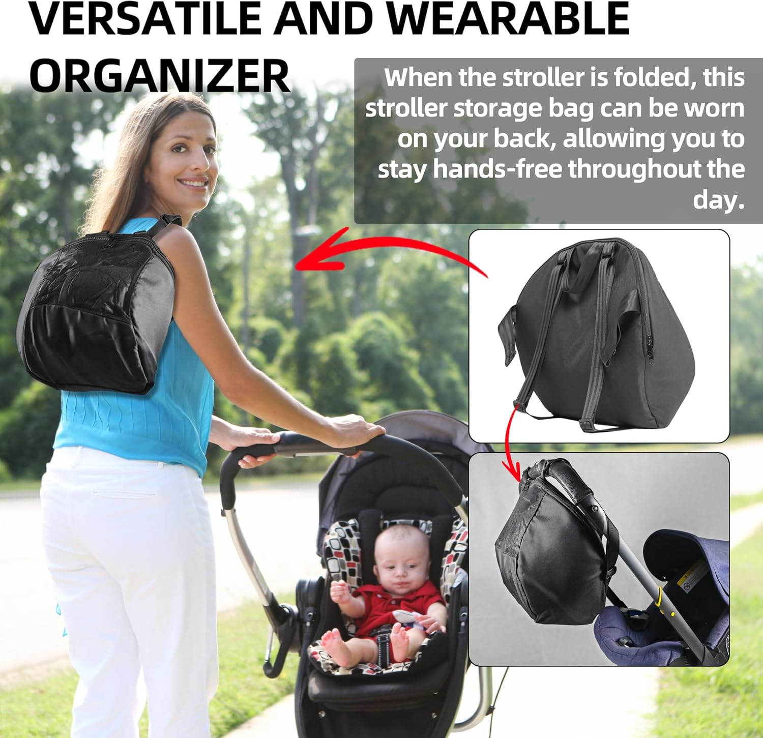 • VERSATILE AND WEARABLE ORGANIZER – When the stroller is folded, this stroller storage bag can be worn on your back, allowing you to stay hands-free throughout the day. It also doubles as a practical mommy bag.