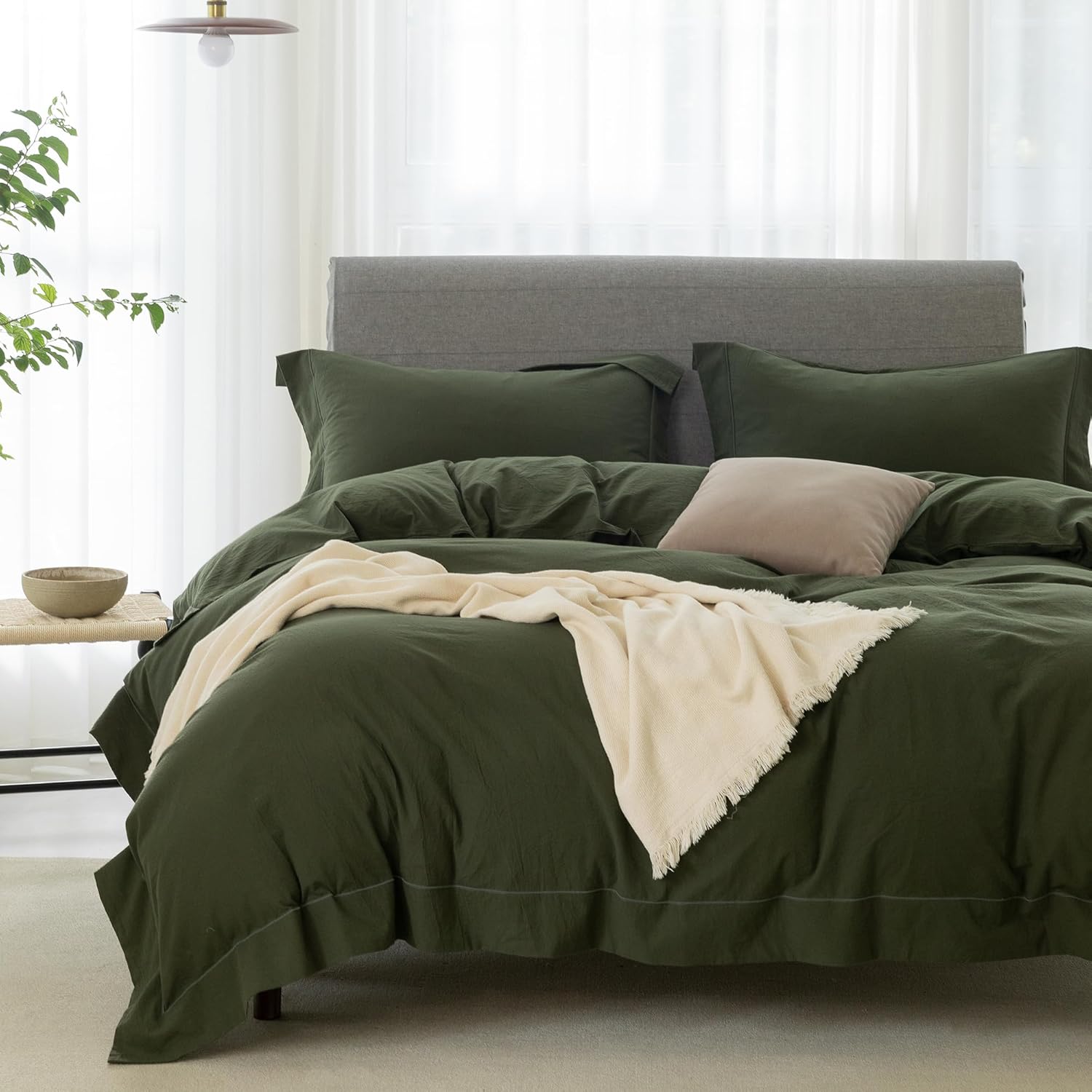 Specification: Bedding Duvet Cover Set Linen Like Texture 100% Cotton 3 Pieces with Zipper Closure Super Soft Cozy Breathable Natural Dreamy Chic Feel (Hemmed Olive Green, King)