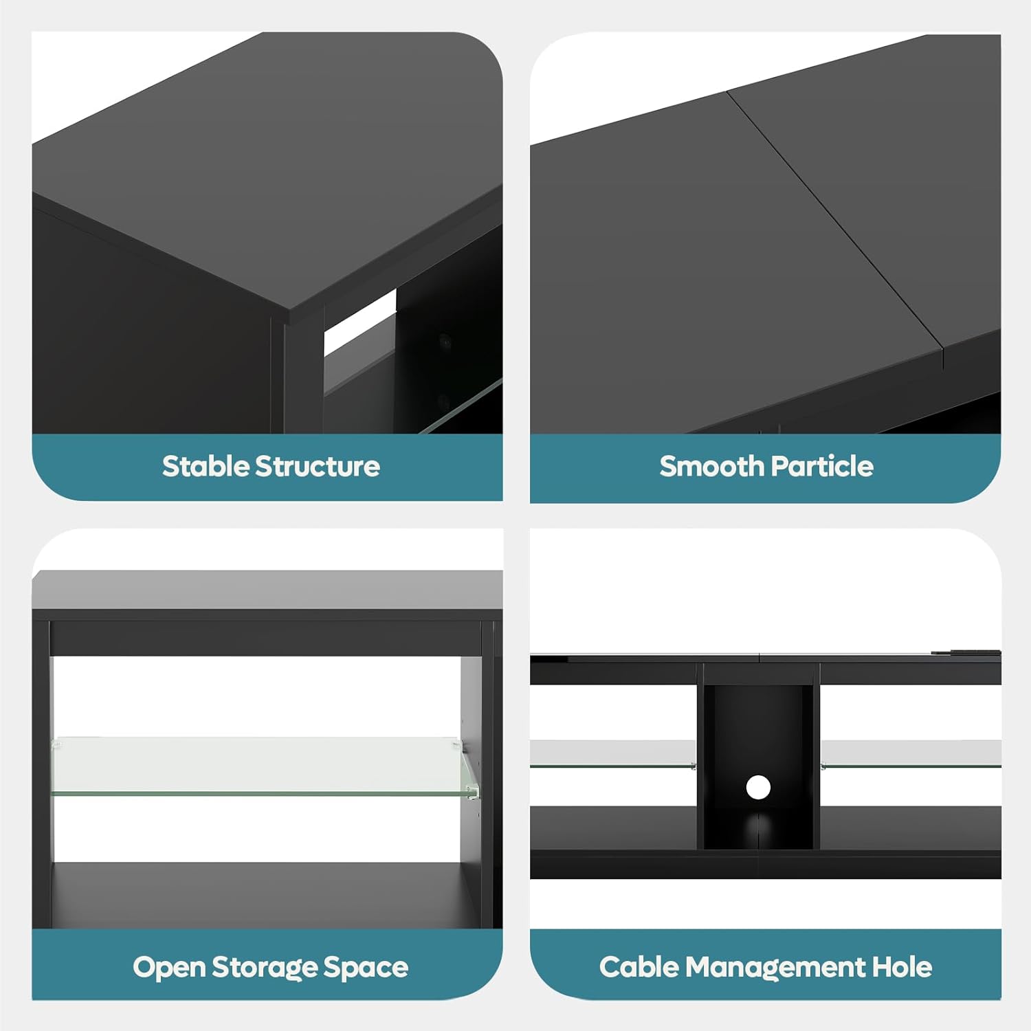 Specification: Bestier LED TV Stand for 55/60/65 Inch TV, High Gloss Gaming TV Stand with Power Outlet, Black Entertainment Center with Storage for Living Room, Bedroom, 55 Inch TV Console with Adjustable Shelves