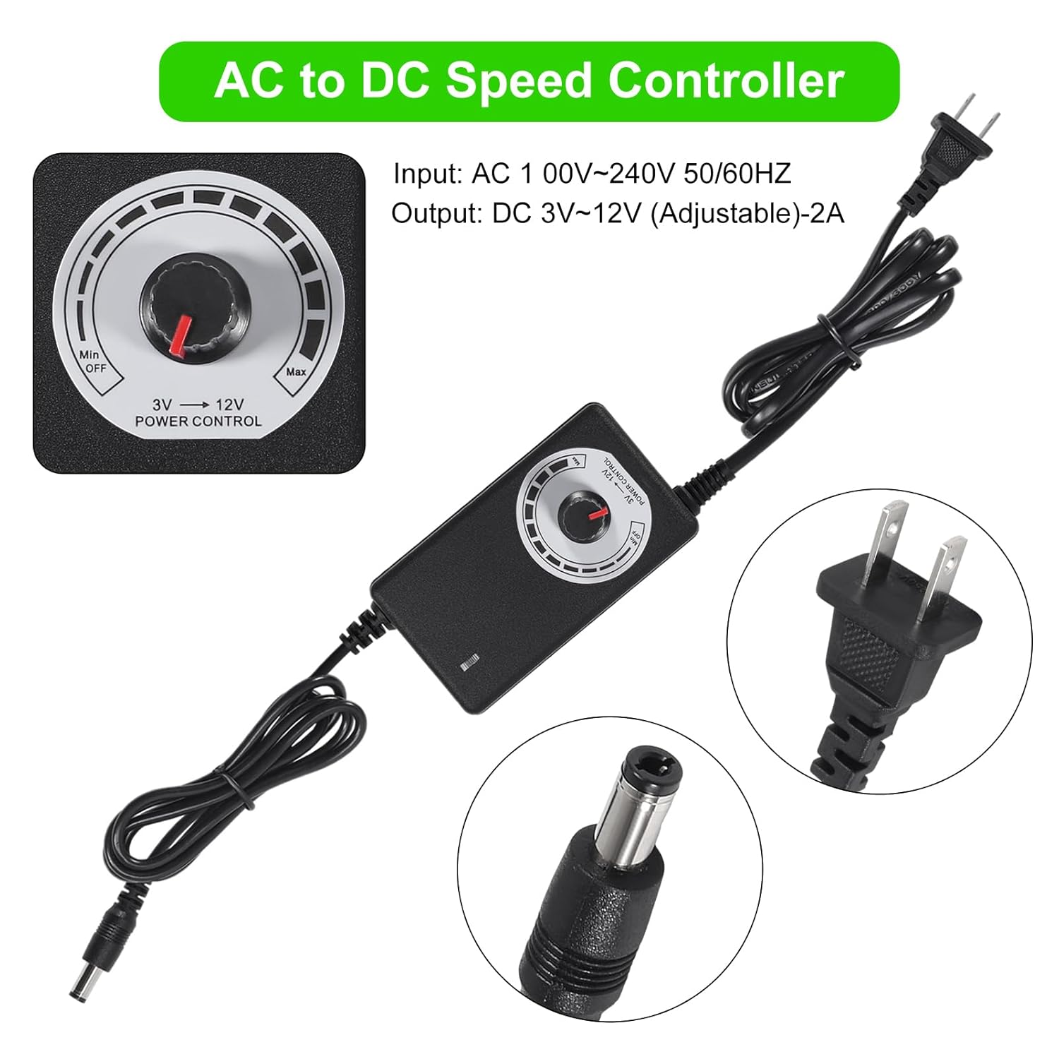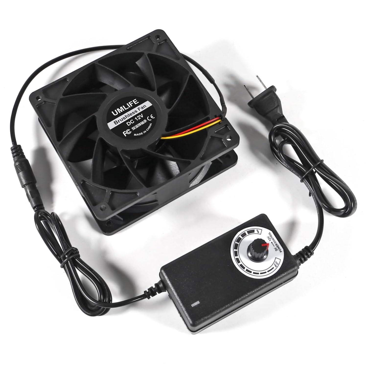 1PCS PC Fans 120mm with Variable Speed Controller 3V to 12V, Axial Computer Fan with AC Plug 110V 120V 220V, Vent Fan for PC Cooler Biltong Box Cabinet Receiver Xbox DVR