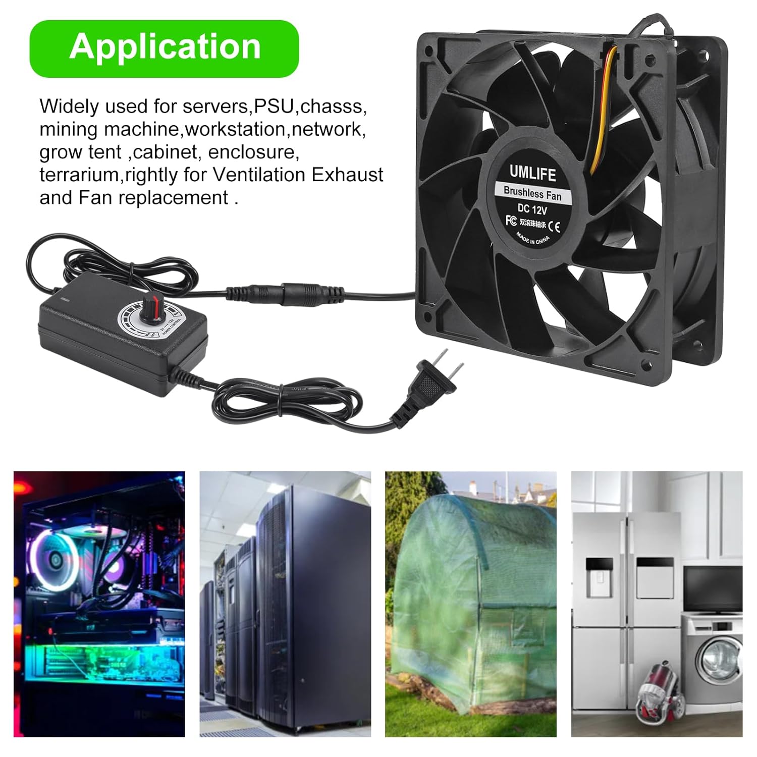 it works great for DIY fan or as an additional cooling fan for your gaming needs X-box, ps4, Amplifier, Fireplace, kitchen window, server, humidifier, mushroom growing, sound system, etc.