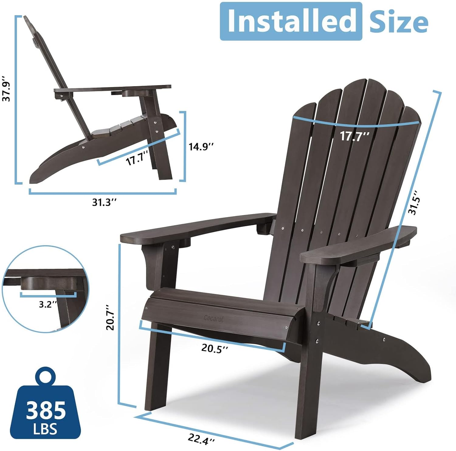 Specification: Cecarol Normal Size Adirondack Chair Plastic, Outdoor Fire Pit Chair with Cup Holder, Adirondack Patio Chair Weather Resistant for Outside, Porch, Lawn, Garden- AC01S, Coffee