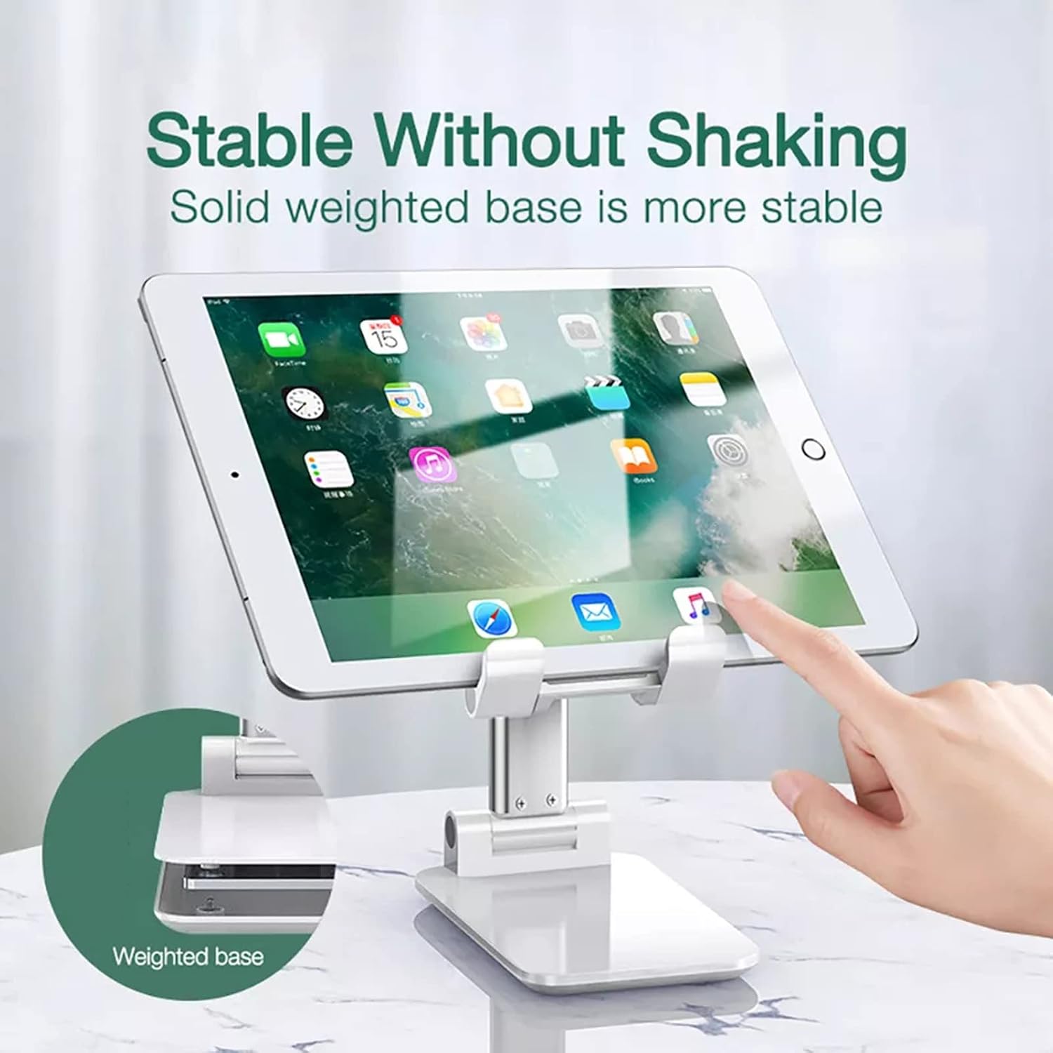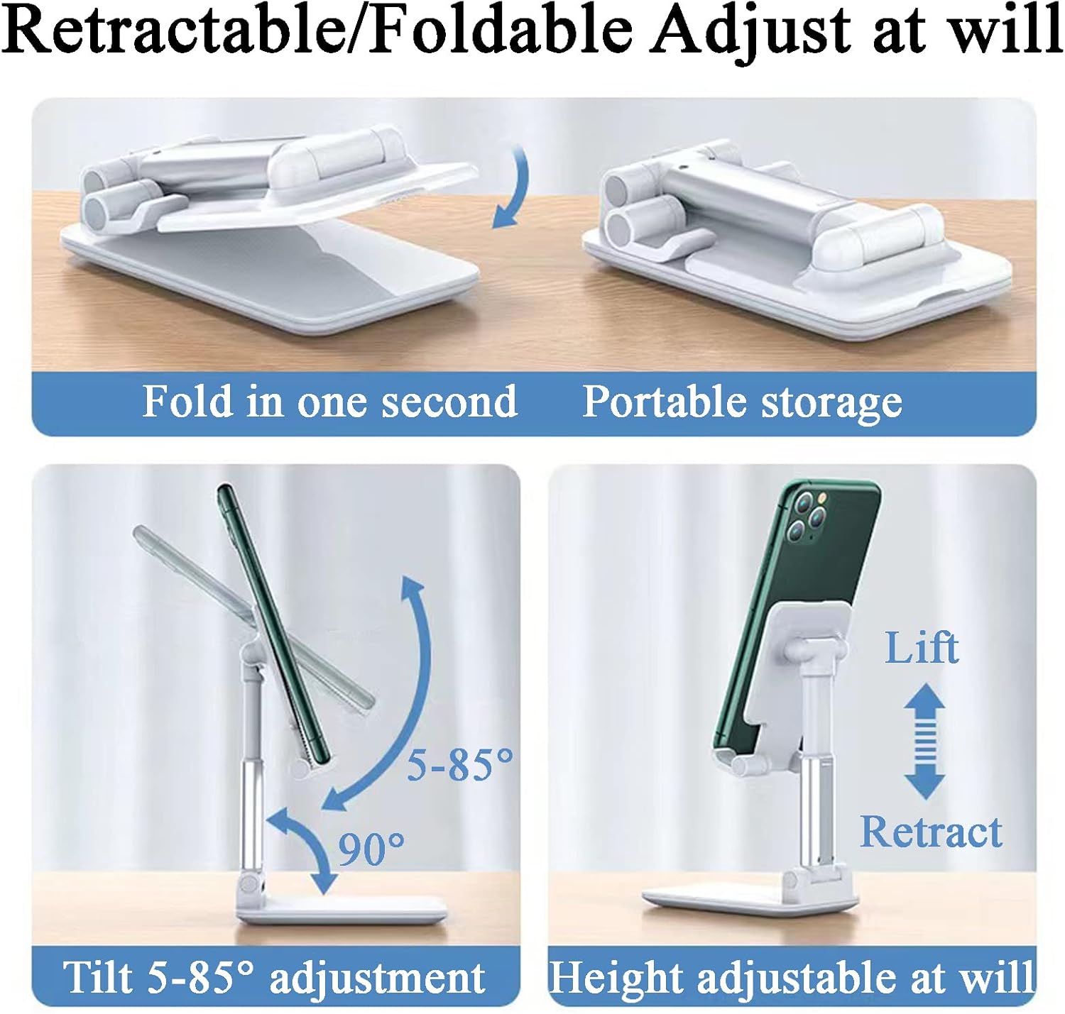 Specification: Cell Phone Stand,Adjustable Foldable Phone Stand for Desk Taller iPhone Stand Compatible with All Smart Phone Desk Accessories(White)