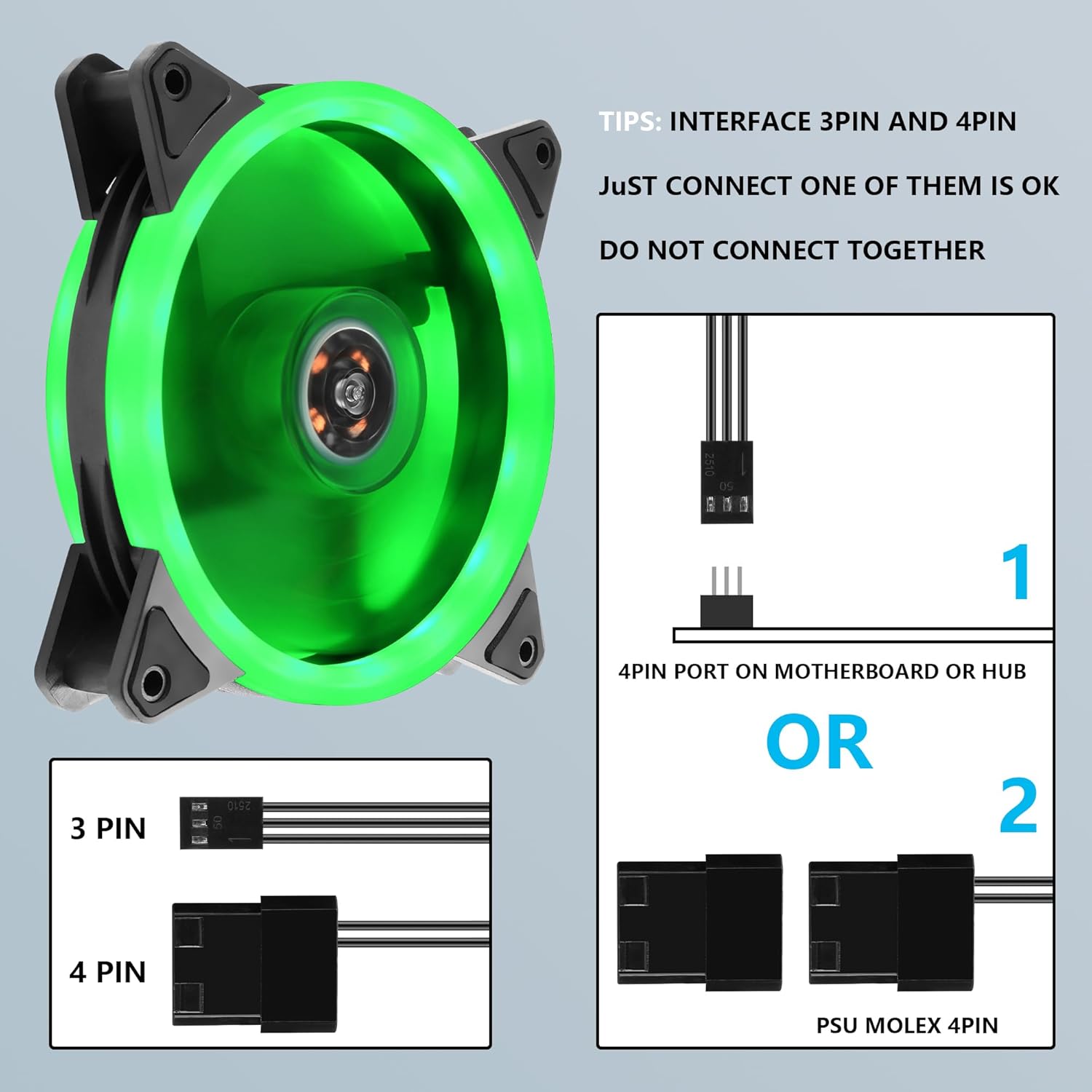 Specification: CERRXIAN 2 Pack LED Silent Case Fan,120mm Computer Fans 1200RPM Efficient Hydraulic Bearing 3pin Silent Computer Fan for Desktop PC Cases Radiators (Green)