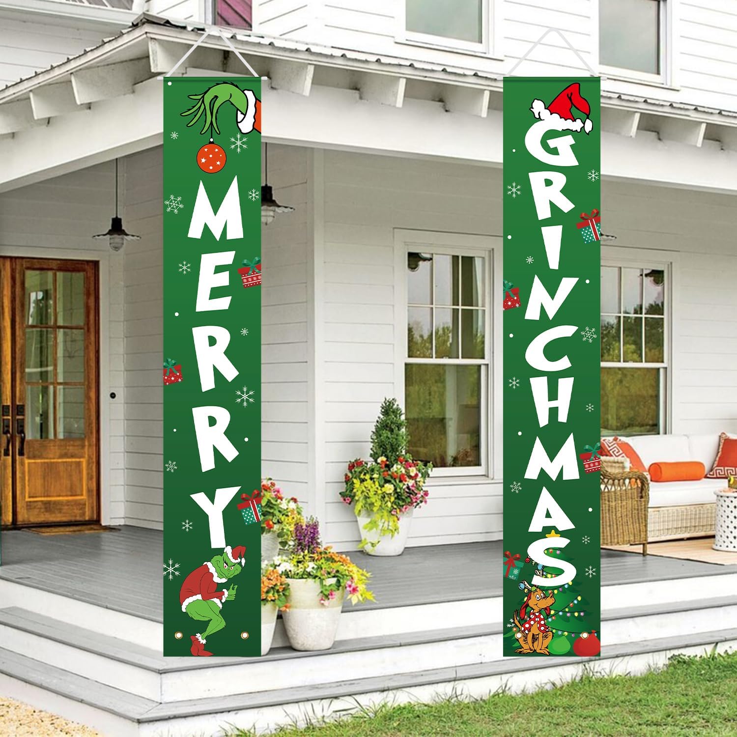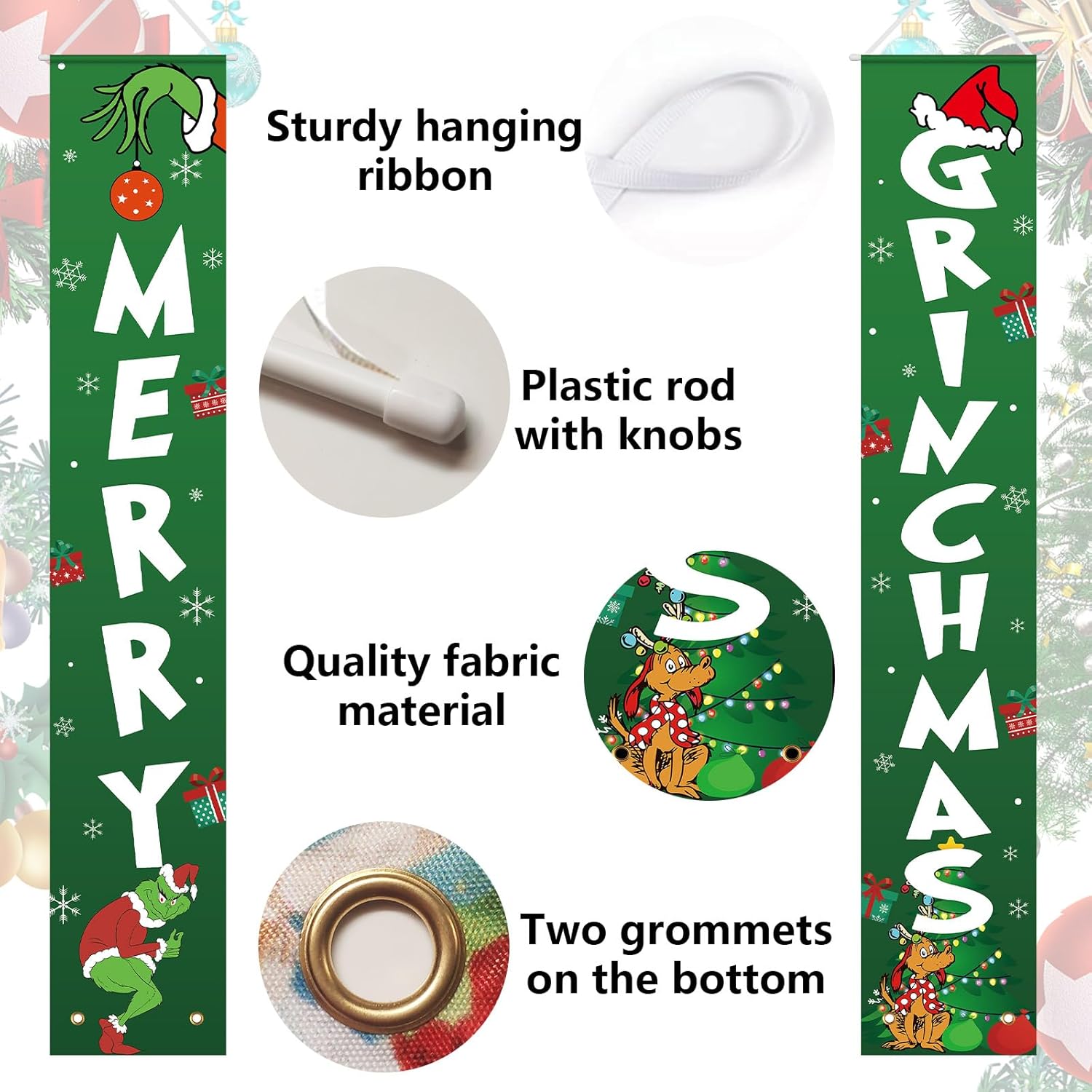 Specification: Christmas Decorations – Christmas Decor MERRY GRINCHMAS Banner – Xmas Porch Door Sign Welcome Banner for Indoor Outdoor Wall Home