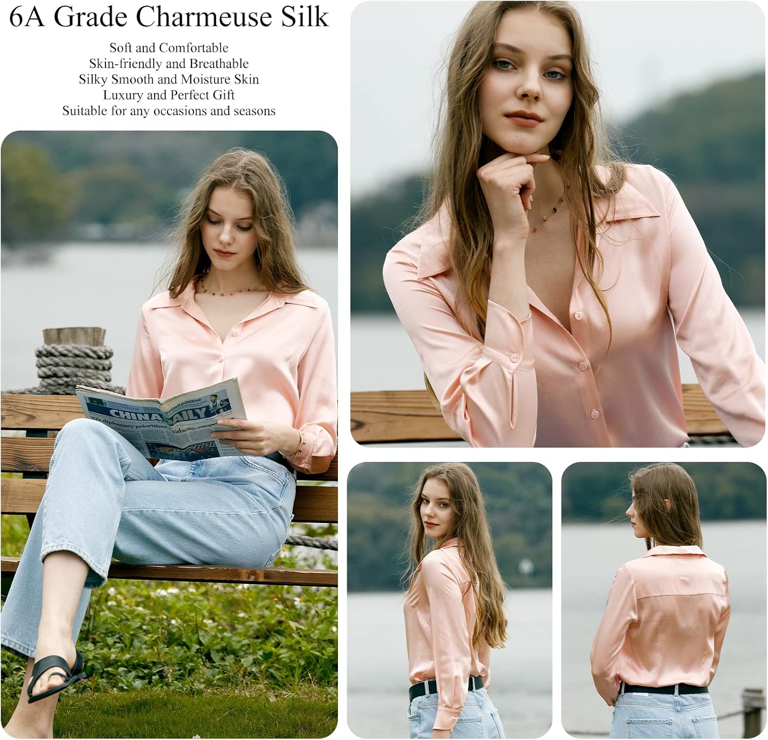 Specification: COLD POSH Silk Blouses for Women Elegant Tops Summer Spring Shirts Mulberry Silk Button Down Shirt