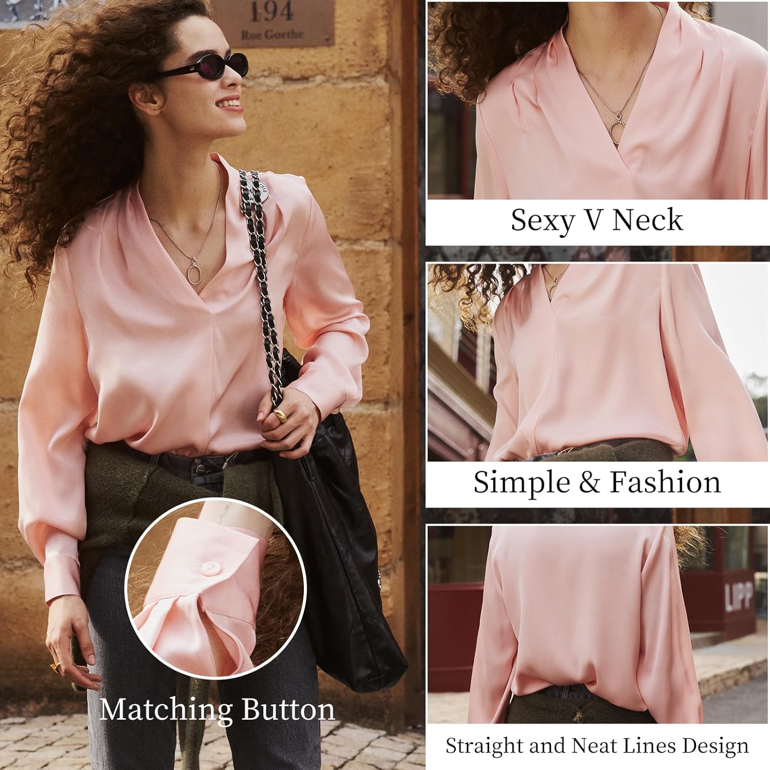 Specification: COLD POSH Womens Mulberry Silk Blouse Elegant Tops Long Sleeve V-Neck Blouses Fall Fashion Summer Luxury Button Down Shirts