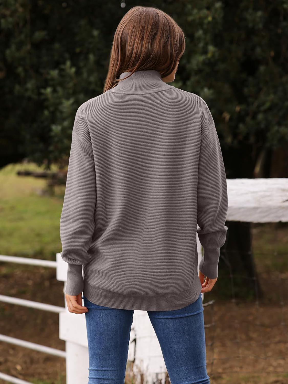 Specification: DEEP SELF Fall Women V Neck 1/4 Zip Pullover Stretch Sweater Long Sleeve Stand Collared Ribbed Knitted Solid Sweaters