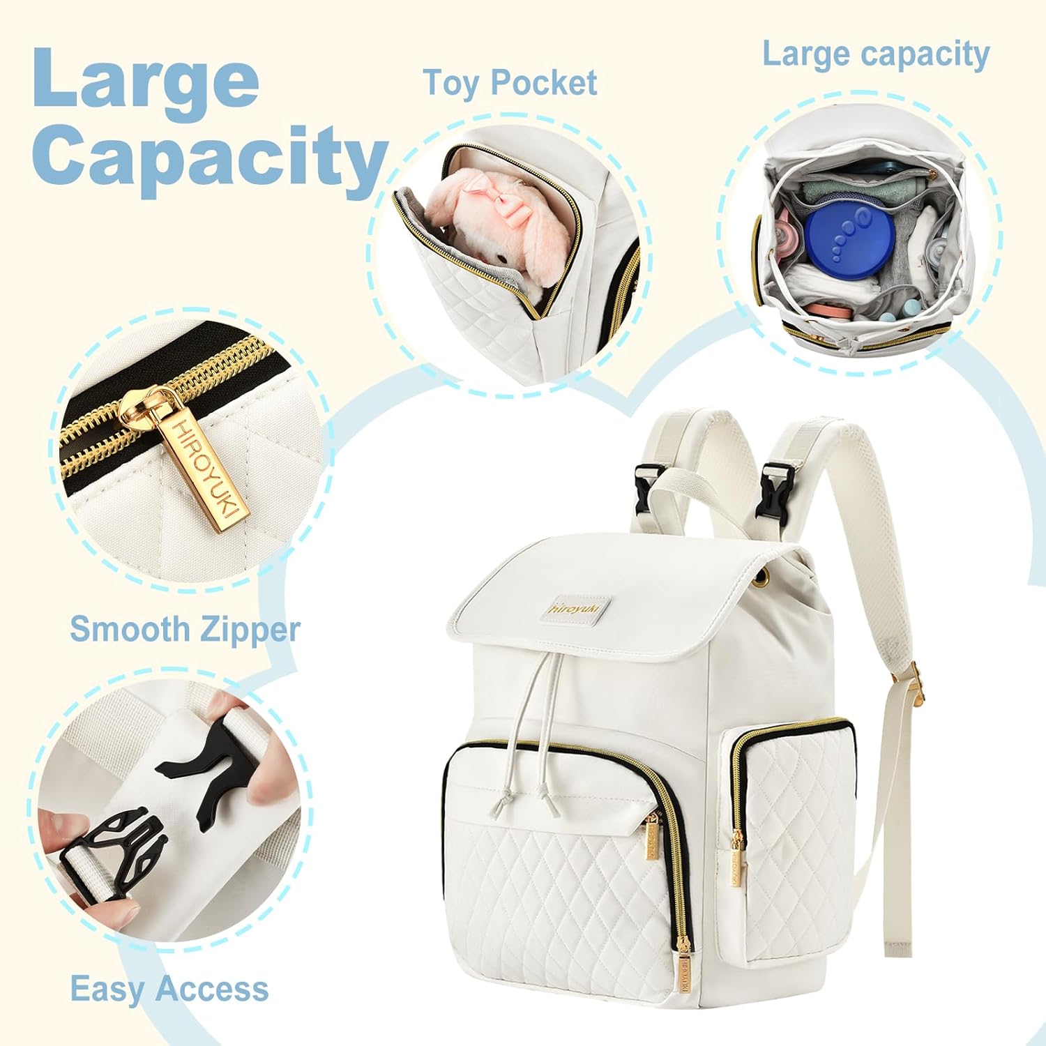 Specification: Diaper Bag Backpack for Mom Large Cute White Travel Drawstring Diaper Bag for Boy Girl Toddler Waterproof Mommy Bag Travel Essentials Baby Registry Tote Bag with Changing Pads and Stroller Straps