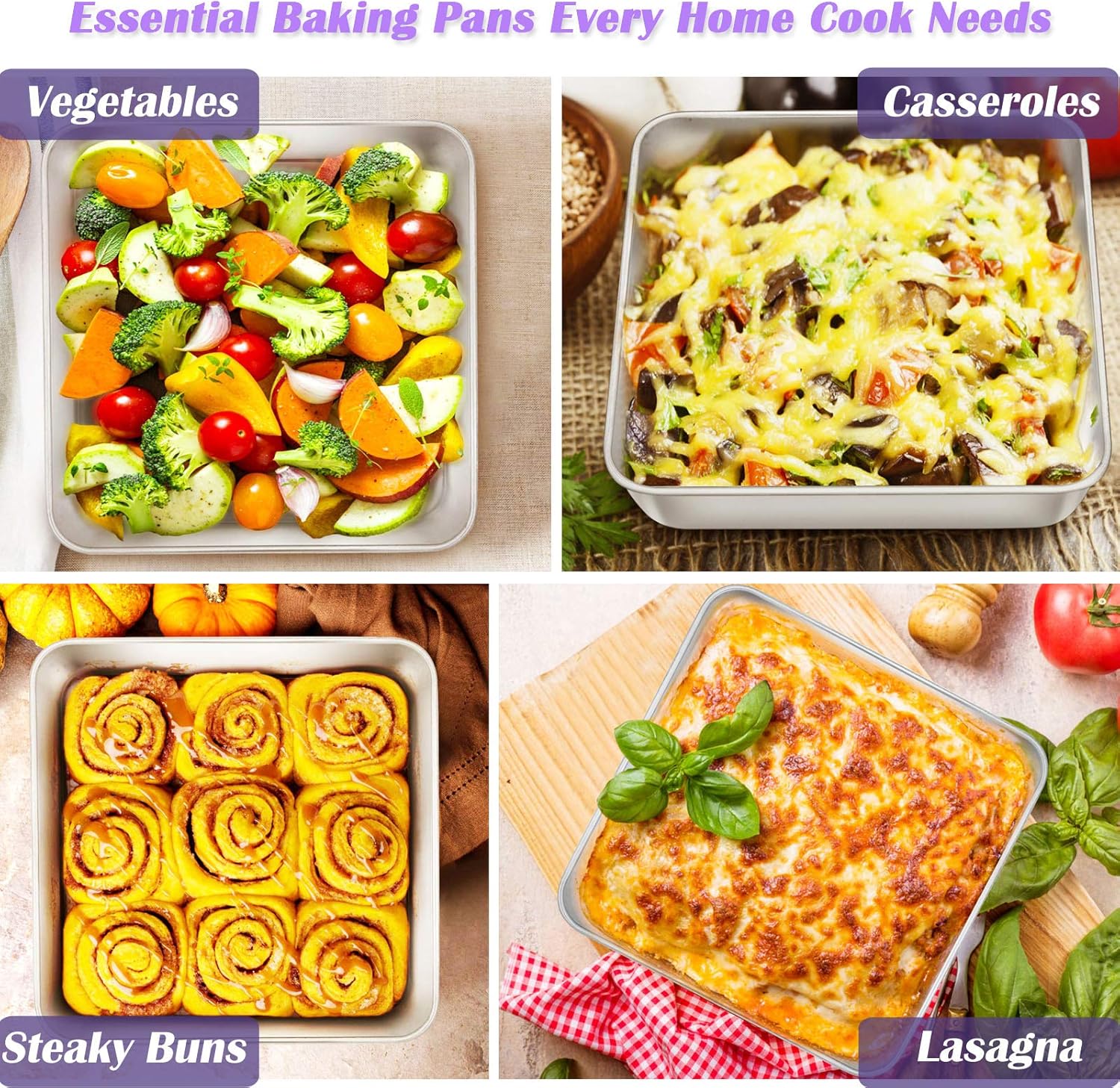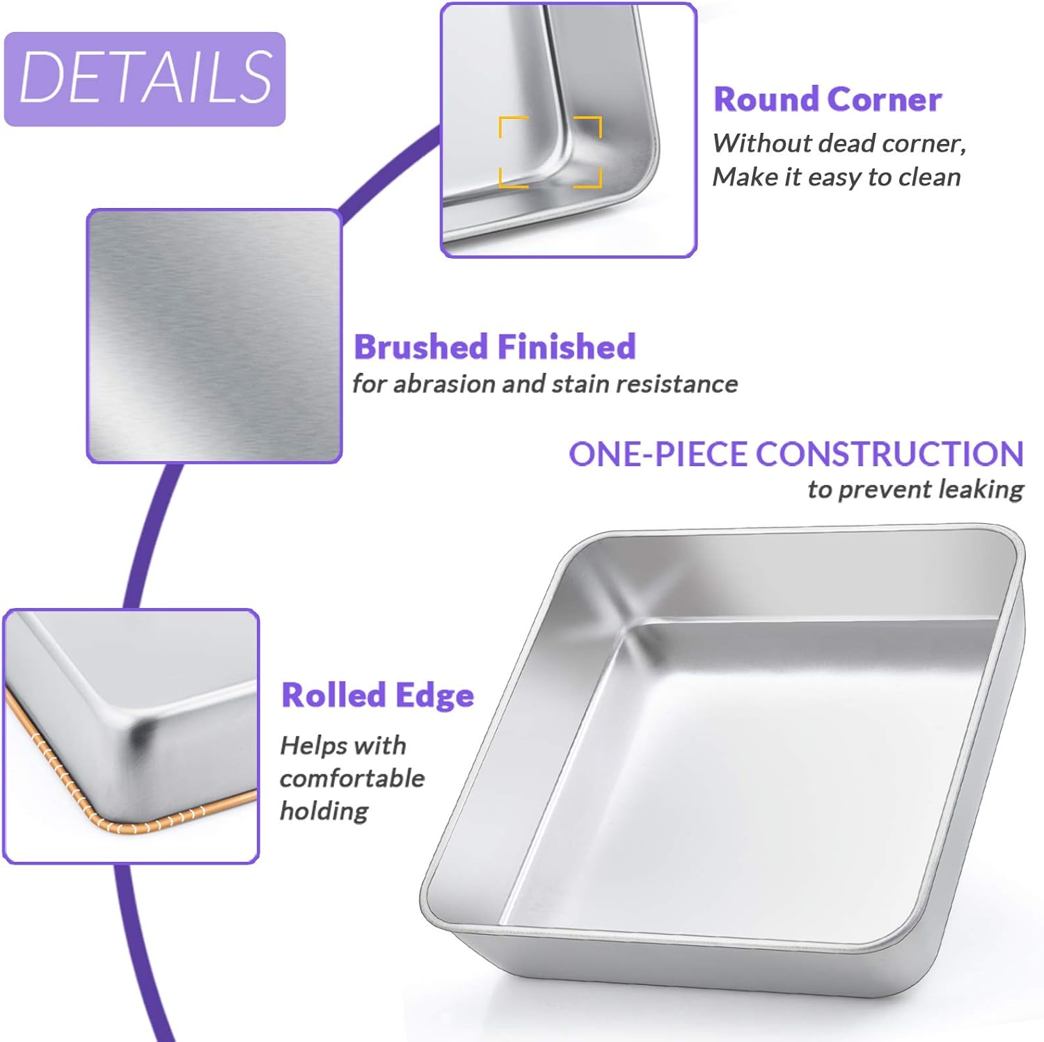 Specification: E-far 8 x 8-Inch Baking Pan, Square Cake Brownie Baking Pans Stainless Steel Bakeware Set of 3, Fits in Small Toaster Oven, Non-toxic & Dishwasher Safe
