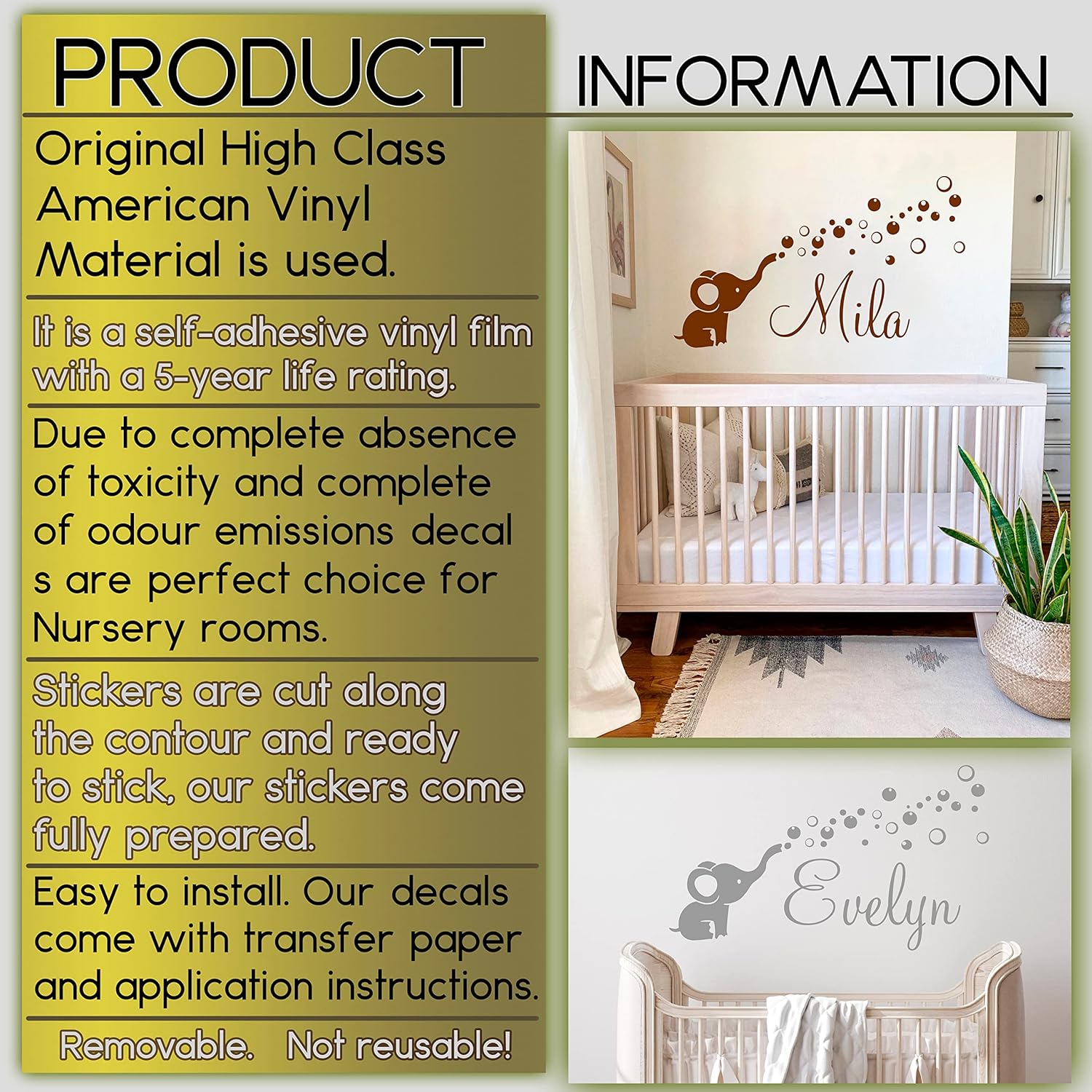 Elephant Wall Decals Name Nursery for Girl. Baby Girl Name Nursery Wall Decor / Personalized Custom Name With Elephant Bubbles Vinyl Wall Art Decal Sticker. Girls Name Nursery Decor