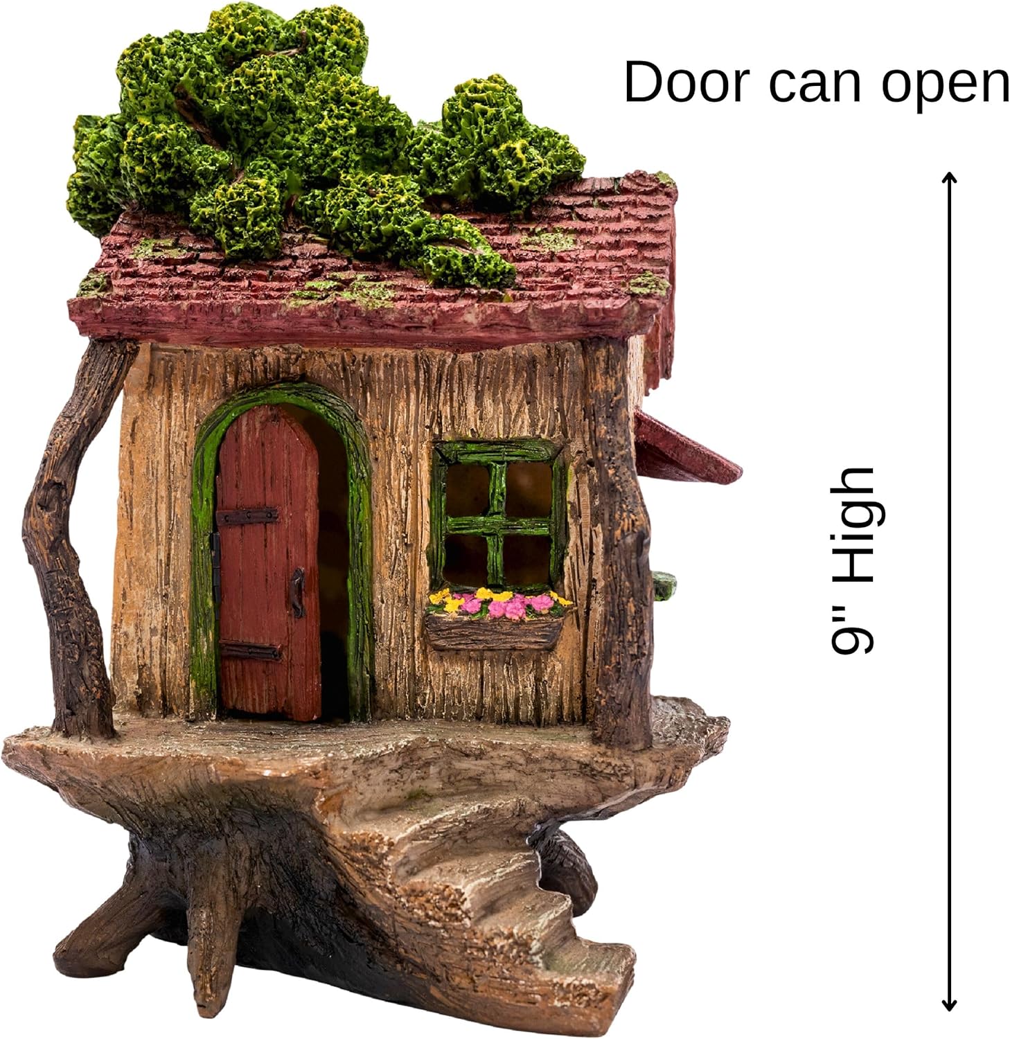 Outdoor Fairy Garden Decorations: Features a charming fairy treehouse with a working door; crafted with superb detail; perfect for adults creating a miniature garden