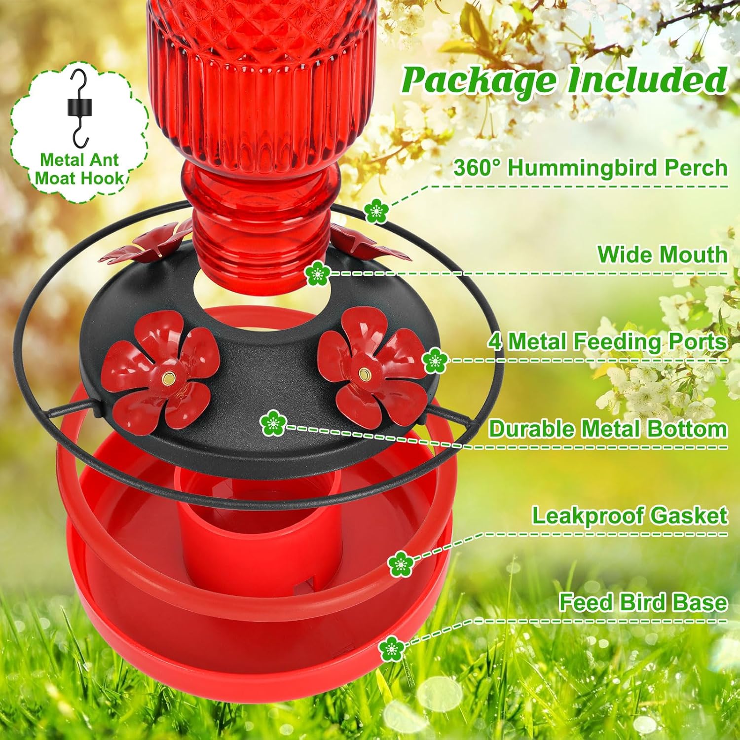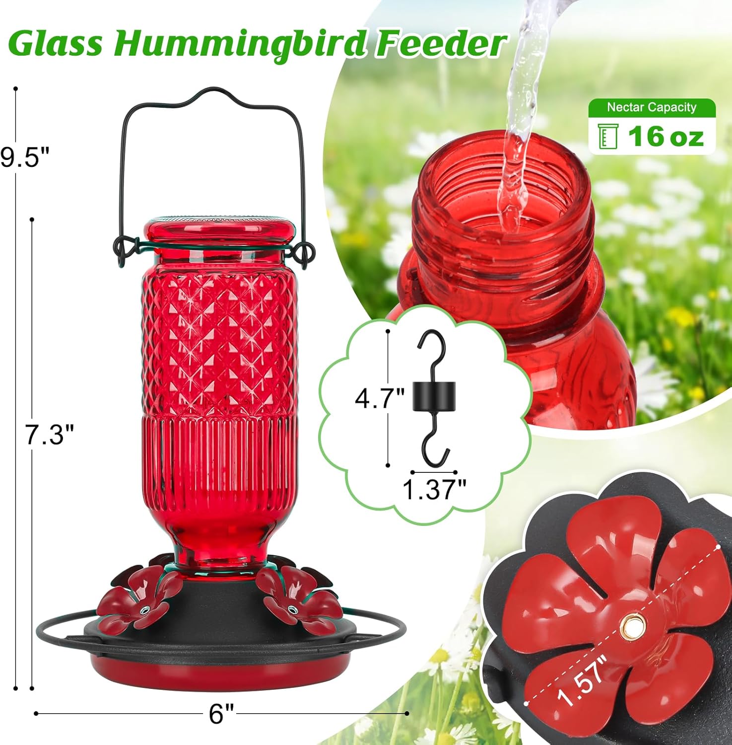 Specification: FEED GARDEN Glass Hummingbird Feeder for Outdoors Hanging, 16 OZ Humming Birds Feeders with 4 Bee Guard Feeding Ports & Built-in Ant Moat, Bird Feeder for Outside, Red
