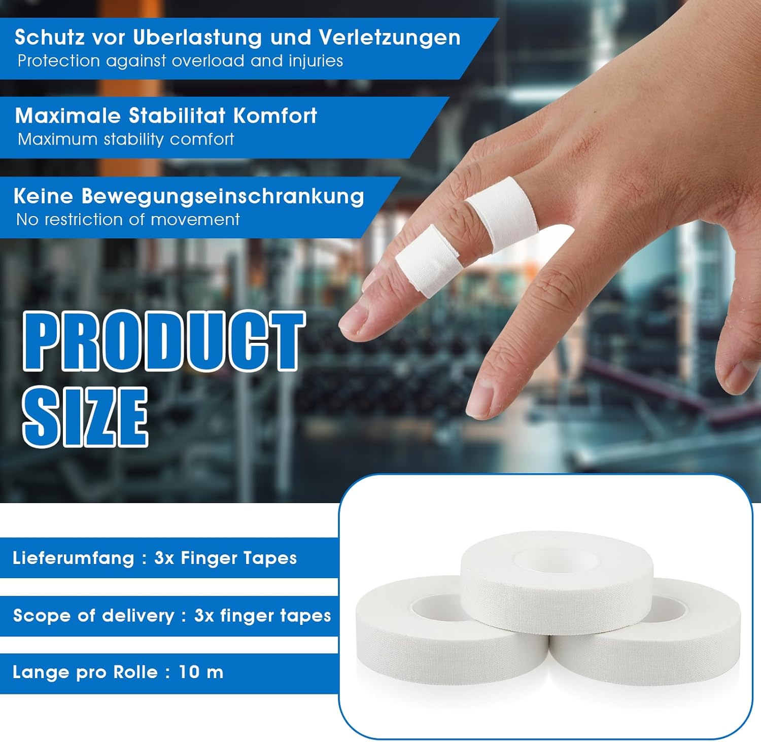 Specification: Finger Tape, 0.5 Inch x 10 Yard White Athletic Tape Extra Strong Adhesive, 3 Rolls Sport Tape, Medical Tape, Foot Tape for Rock Climbing, Grappling, Basketball, Lifters and BJJ Finger Tape
