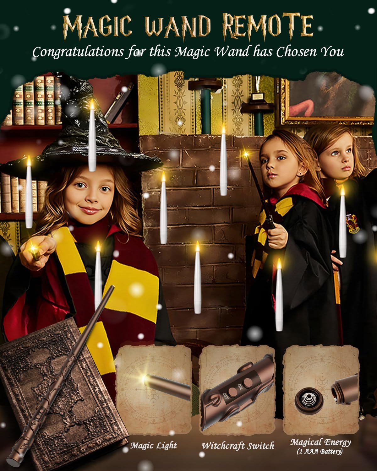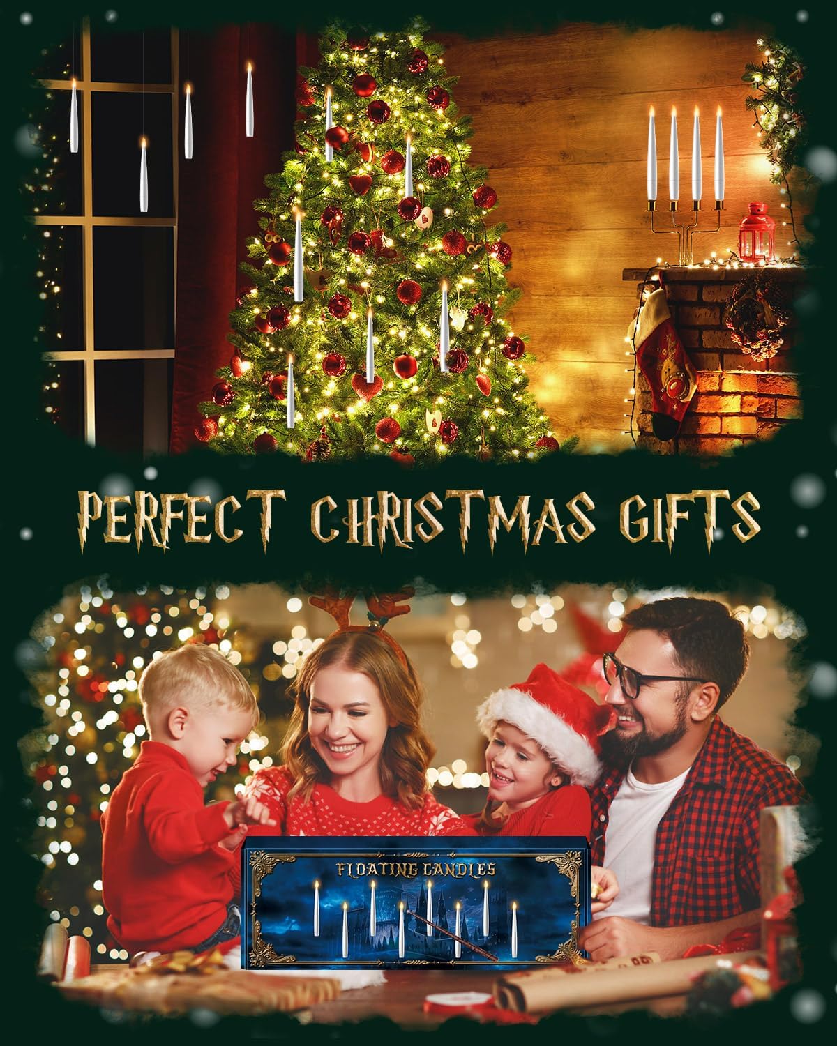 Floating Candles with Wand 10PCs – Christmas Decorations Magic Hanging Candles Flickering Warm Light LED Flameless Candles with Remote for Outdoor Indoor Window Home Bedroom Birthday Party Decor
