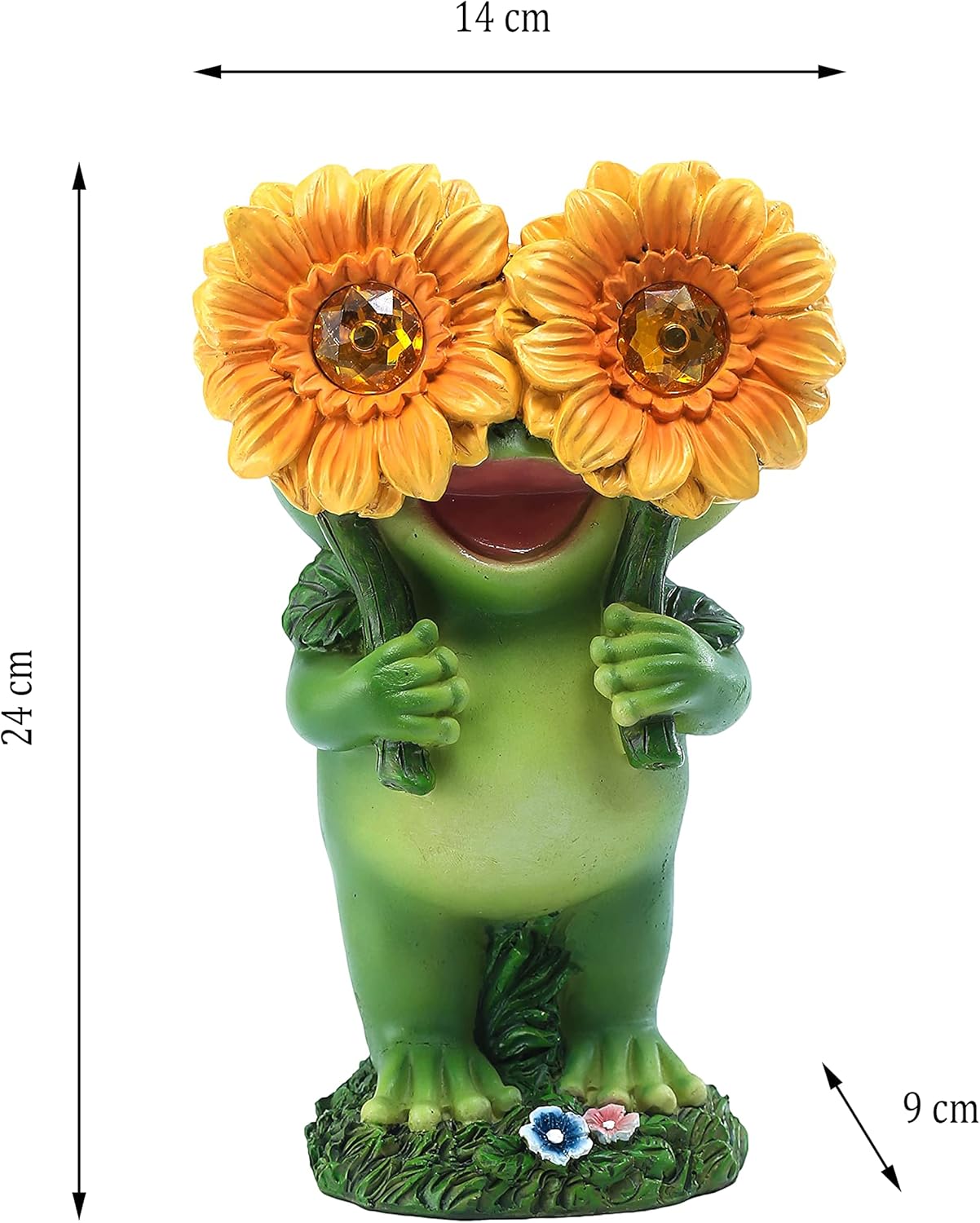 Specification: Funny Frog Garden Decor,Garden Frog Statue with Solar Sunflower led Eyes,Frog Figurine Gift of Lawn Ornament, Lawn Decoration for Outdoor Garden Decor