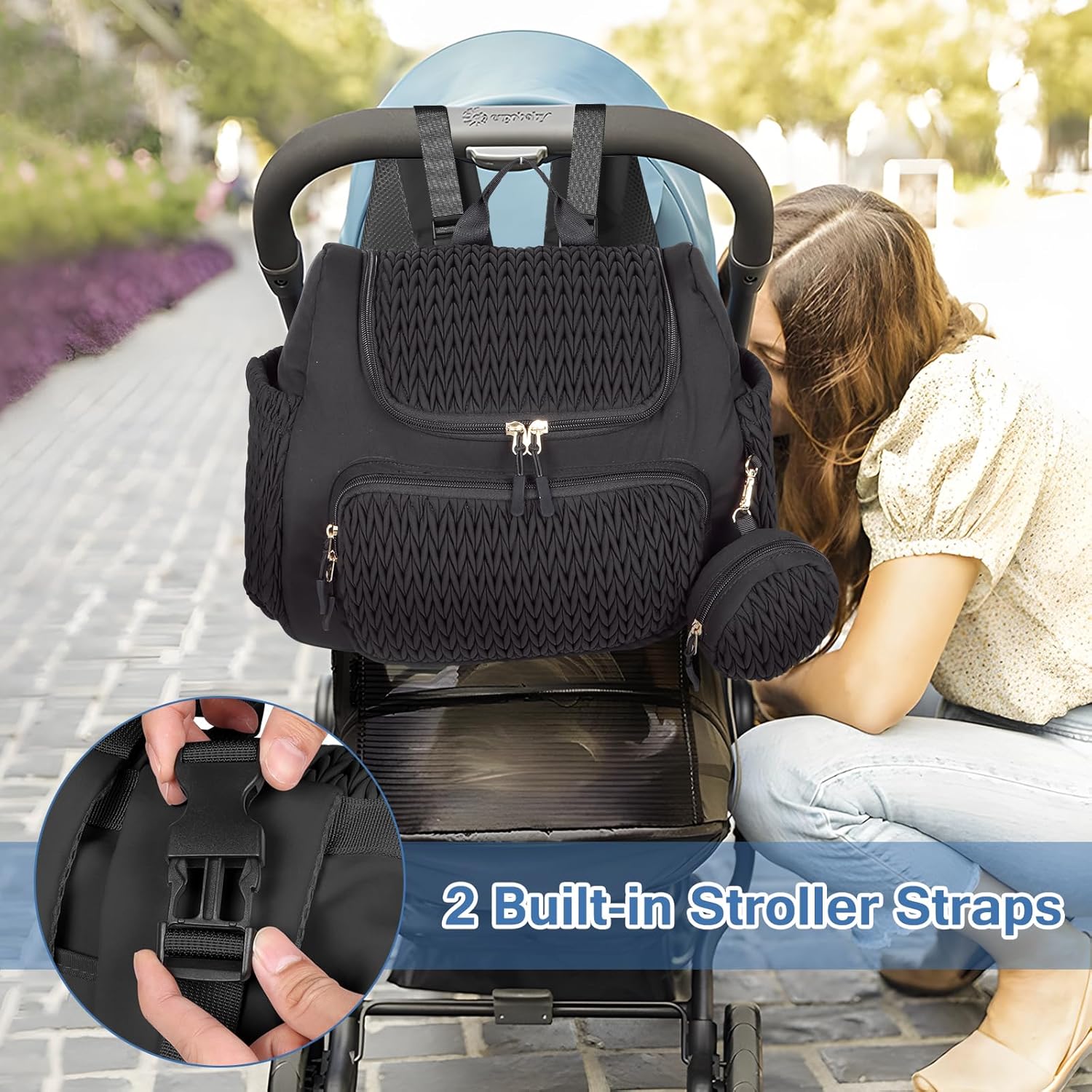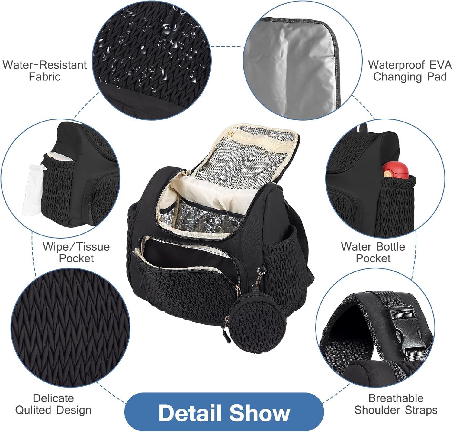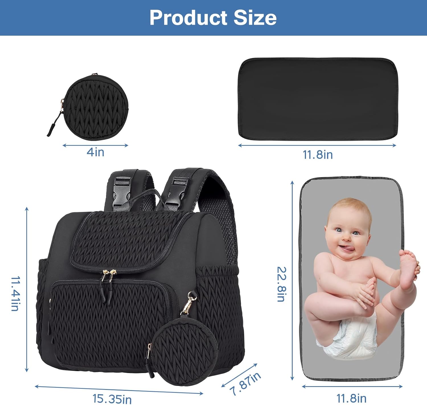 Specification: Geestock Diaper Bag Backpack, Multifunction Quilted Baby Diaper Bag with Changing Pad, Pacifier Case & Stroller Straps, Parents Essentials, Black