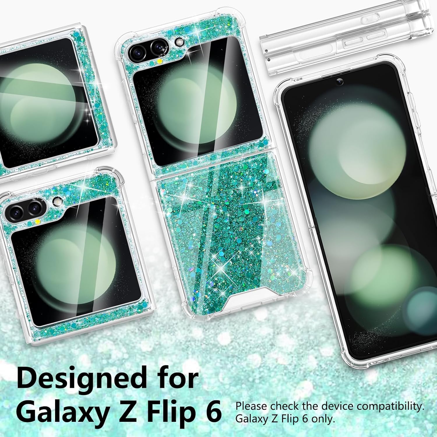 Specification: Glitter Case for Galaxy Z Flip6, Liquid Bling Sparkle Floating Shimmer Soft TPU Clear Luxury Fashion Flowing Glitter Galaxy Z Flip6 Case for Women
