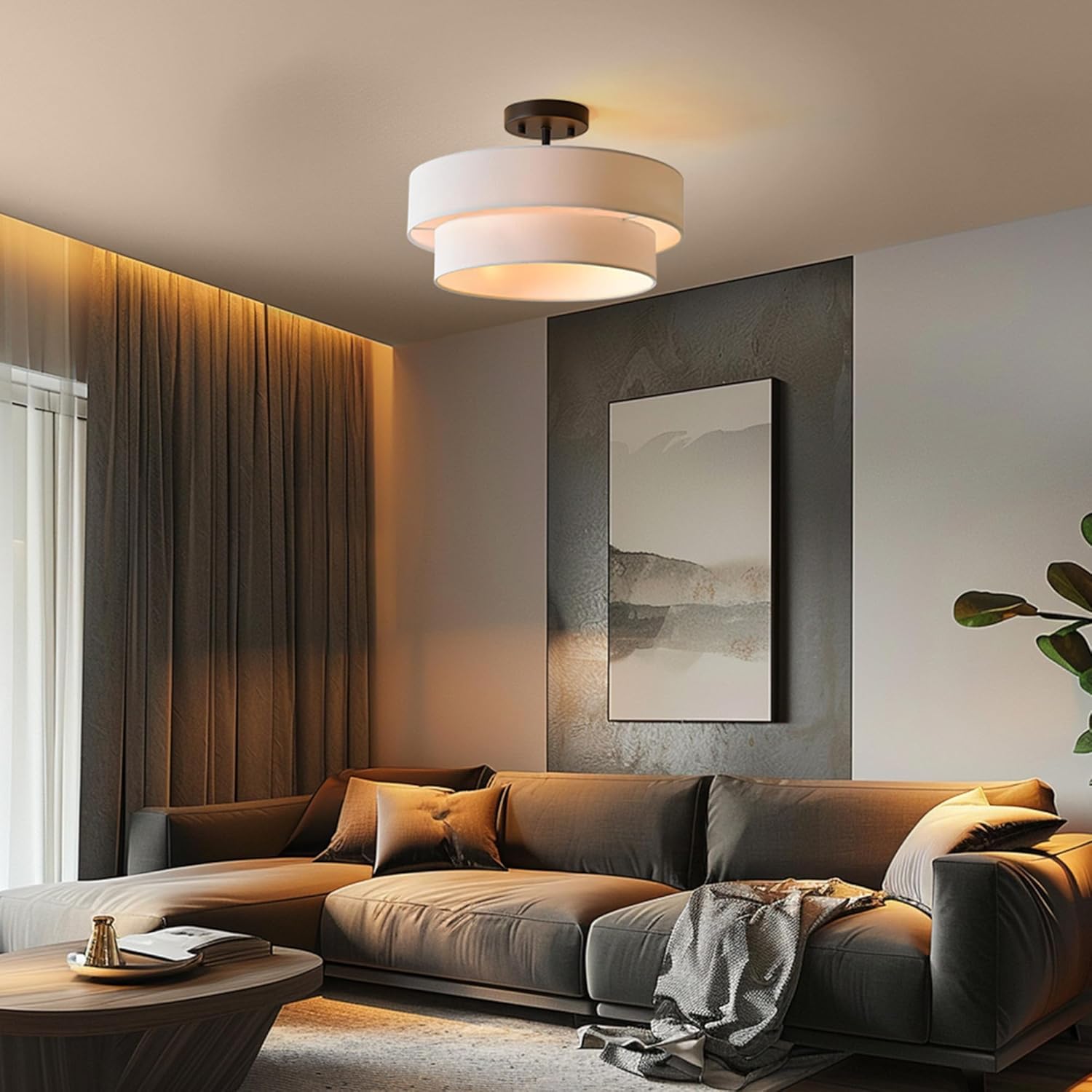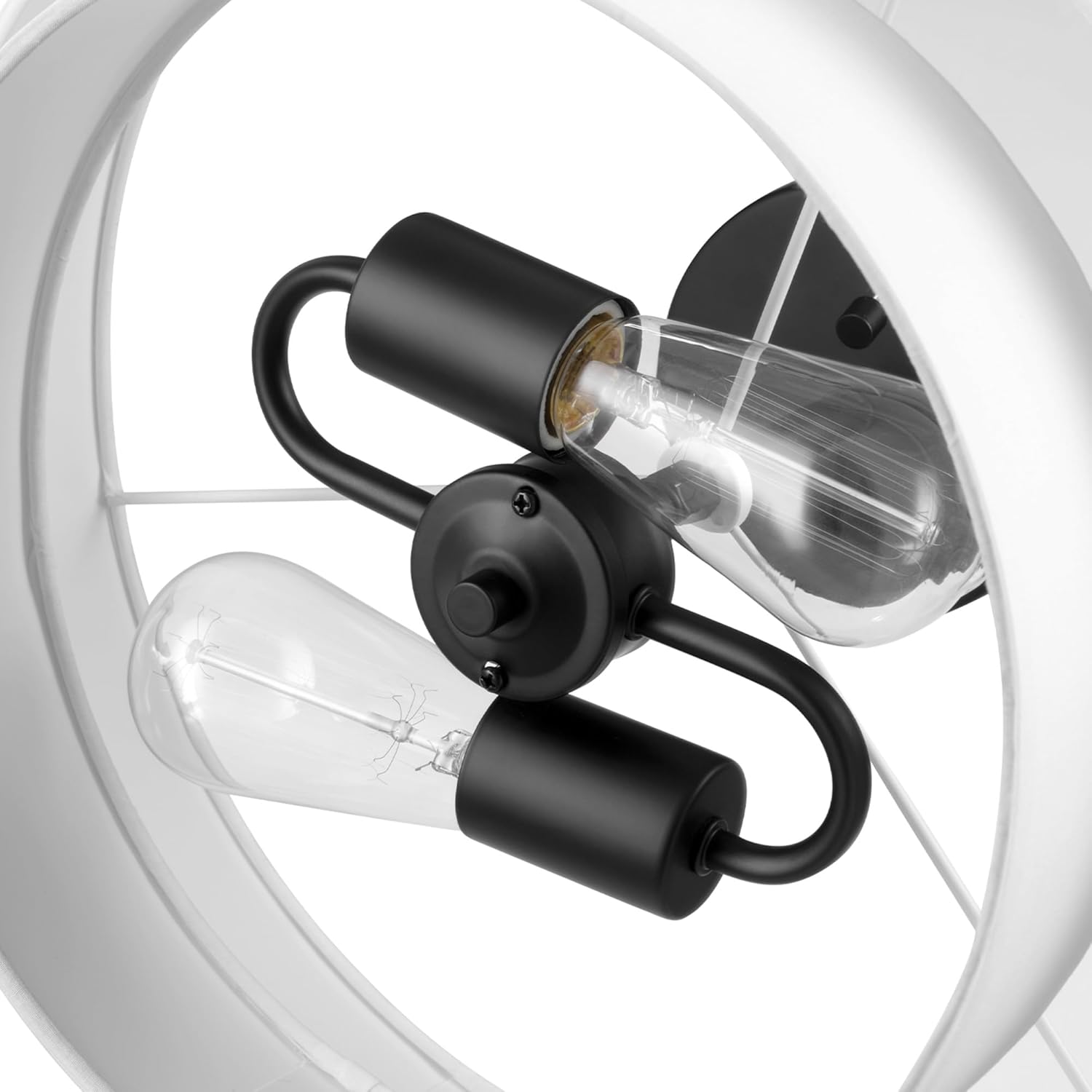 Specification: Globe Electric 66000138 2-Light Semi-Flush Mount Ceiling Light, Matte Black, 2-Tier, White Linen Shade, Home Improvement, Dining Room, Kitchen