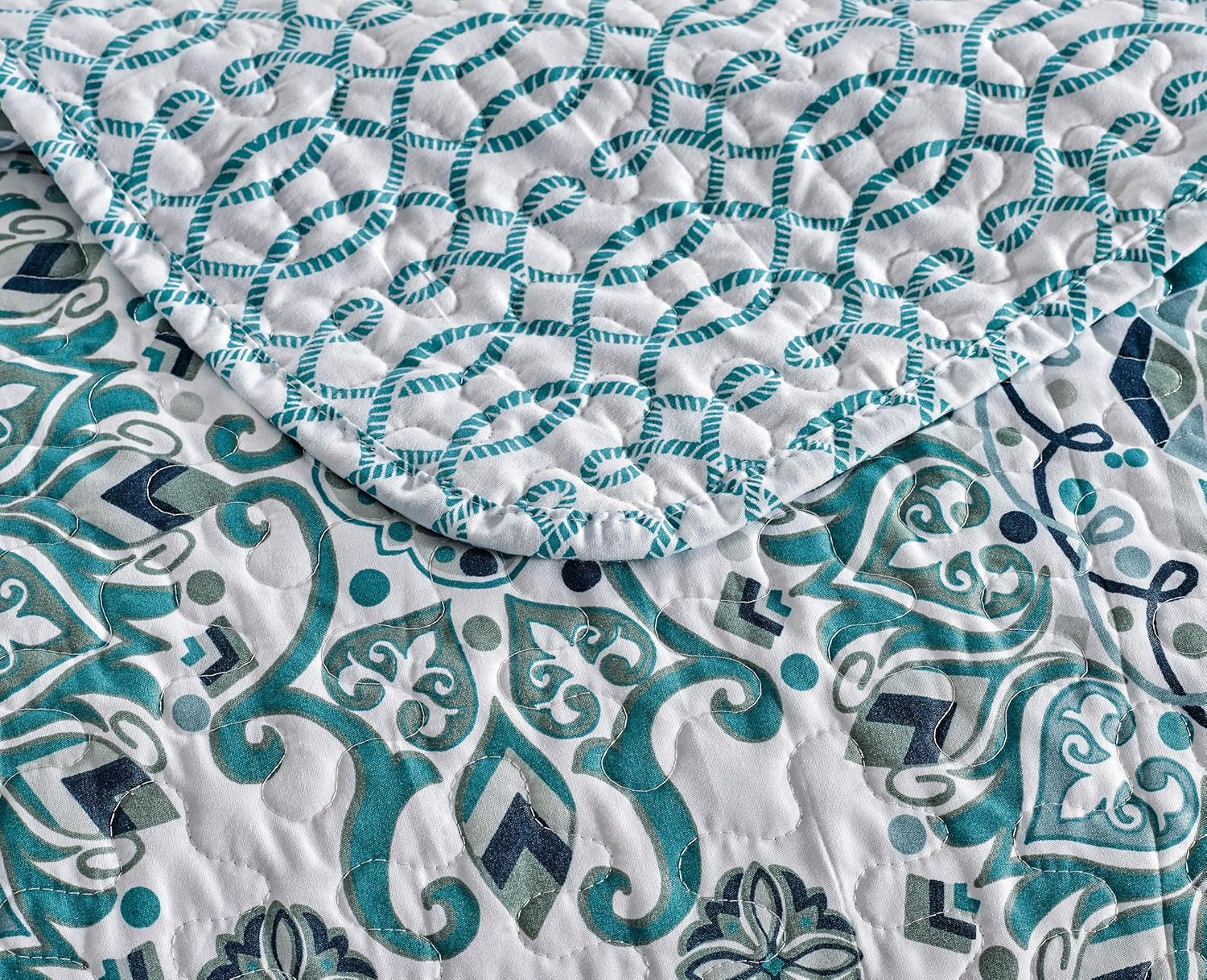 Specification: Home Collection 3pc Full/Queen Quilted Bedspread Set Floral Bedding Turquoise Navy Blue White Sage Green New # Sara