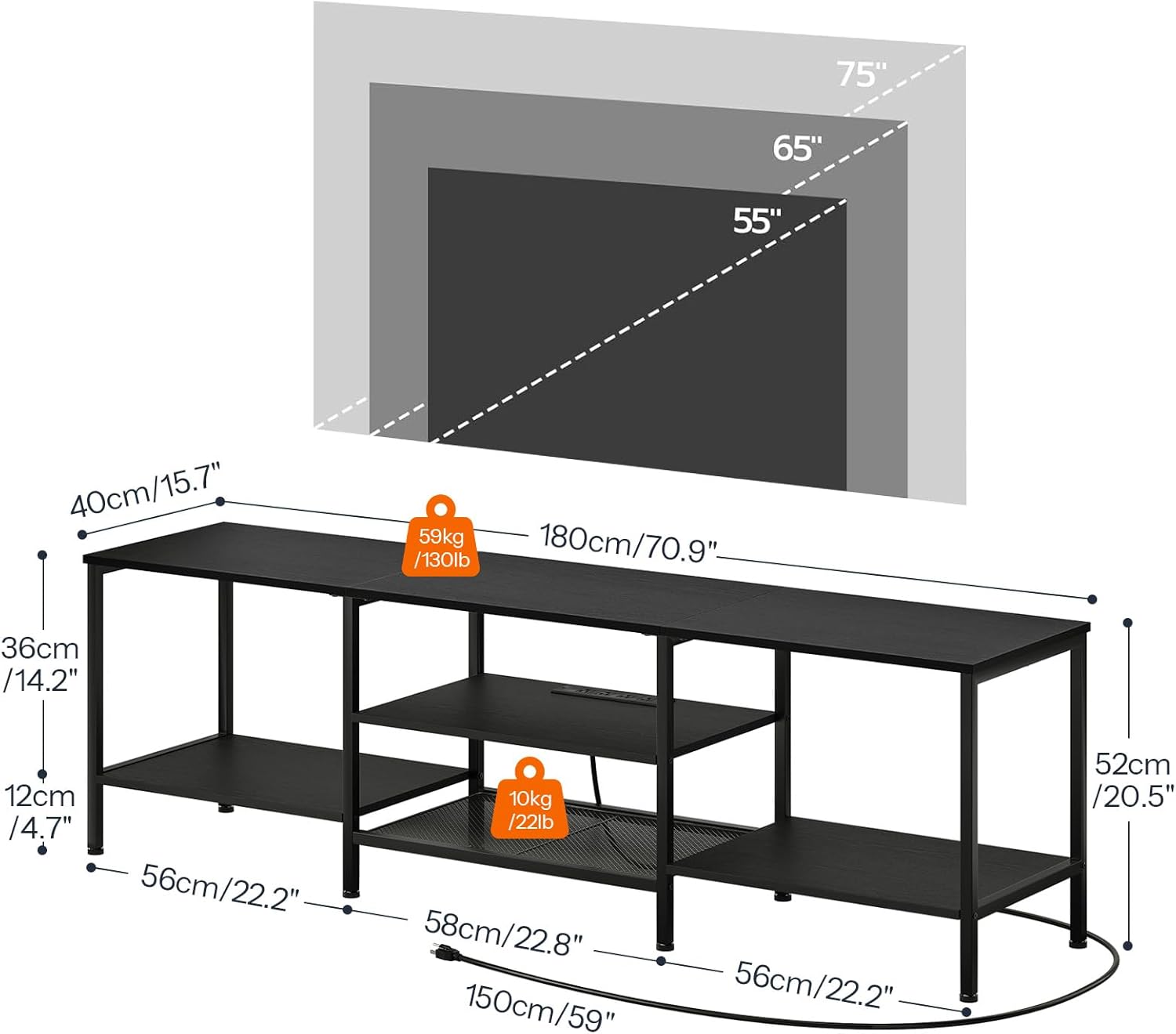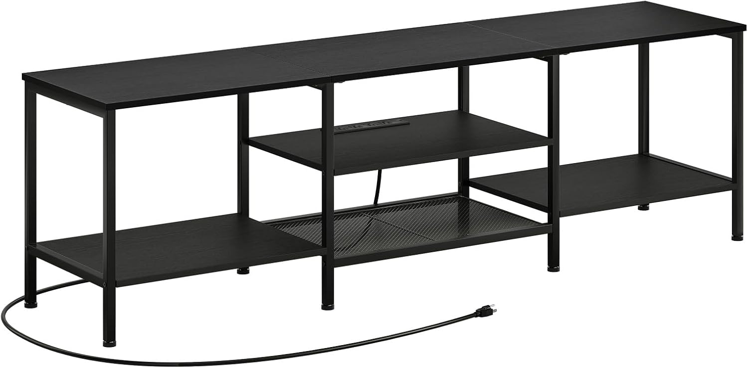 Specification: HOOBRO TV Stand with Power Outlets to 75 Inches, TV Console Table with Open Storage Shelves Cabinet, Industrial Media Entertainment Center for Living Room Bedroom, Black BB80DS01