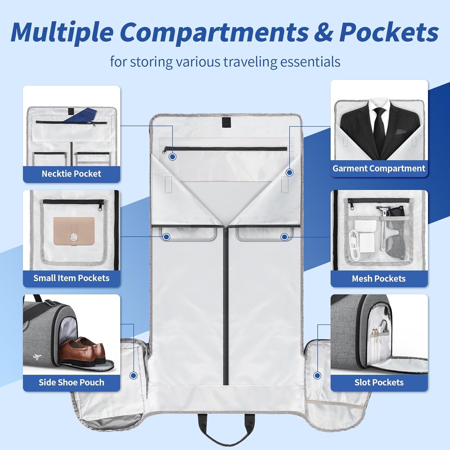 Specification: HOTOR Garment Duffle Bag for Travel -Large Capacity, Portable Carry-on Luggage with Shoulder Strap, Versatile Travel Bag with Trolley Sleeve for Suitcase, 2-in-1 Overnight Bag, 22.8”× 11.8”× 11”