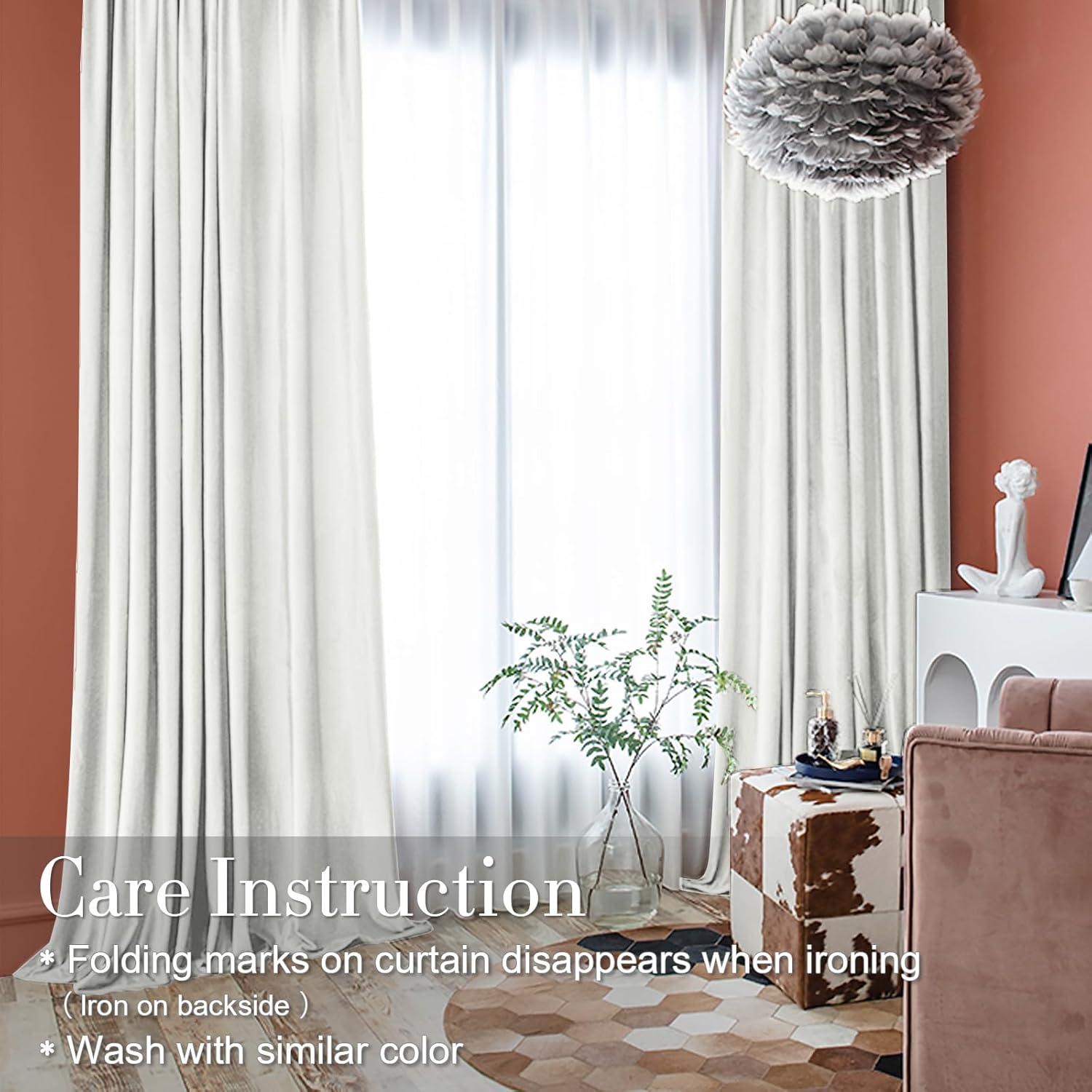 Specification: jinchan Velvet Light Filtering Curtains for Living Room, Luxury Fashion Curtains 84 Inch Long for Bedroom, Stylish Super Soft Privacy Drapes, Rod Pocket Back Tab Window Treatments, 2 Panels White