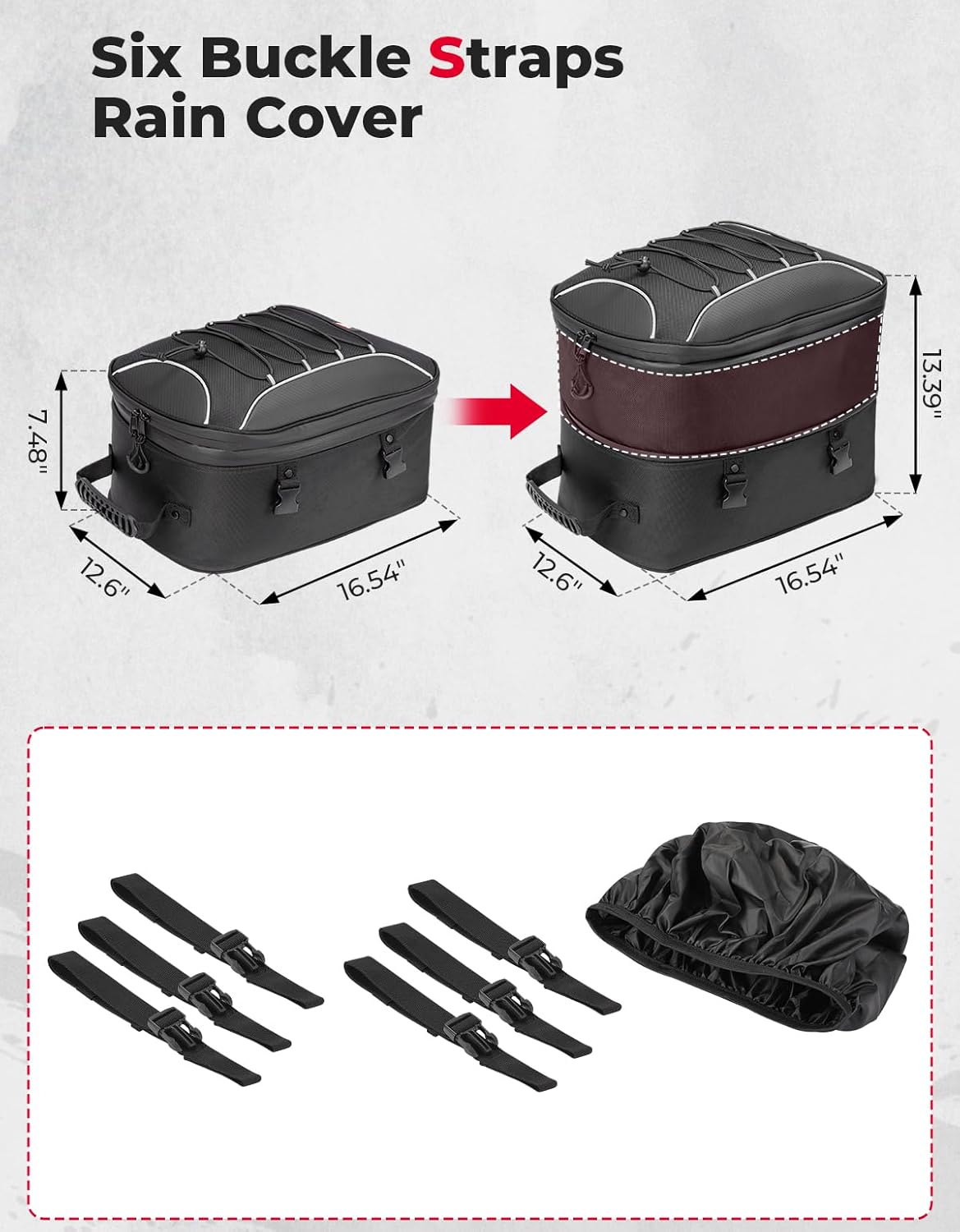 Specification: KEMIMOTO Motorcycle Tail Bag, Dual Use Motorcycle Rear Seat Bag with Waterproof Rain Cover, 25L-45L Expandable Motorbike Helmet Bag Luggage Storage Backpack
