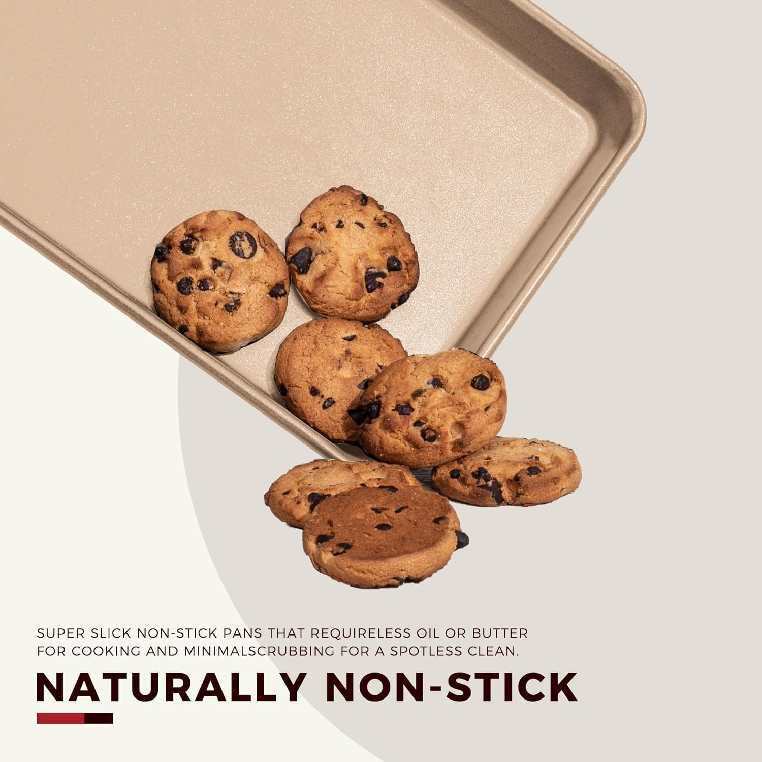 Specification: KITESSENSU Baking Pans Sets, Nonstick Bakeware Set 8-Piece with Round/Square Cake Pan, Loaf Pan, Muffin Pan, Cookie Sheet, Roast Pan, Cooling Rack & Silicone Oven Mitts, Carbon Steel Bake Set,Gold