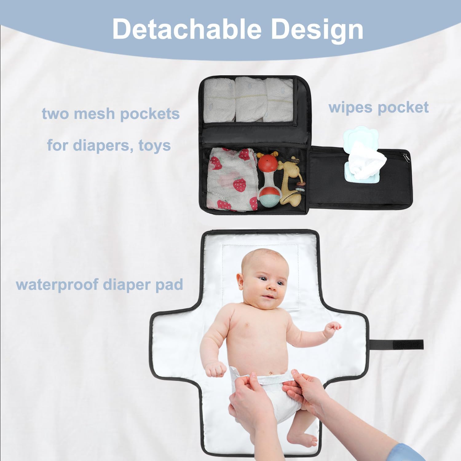 Specification: LANDICI Portable Diaper Changing Pad for Newborn Girl & Boy, Travel Waterproof Baby Changing Pad with Smart Wipes Pocket, Detachable Diaper Changing Mat, Gifts for Baby Newborn Essentials, Black