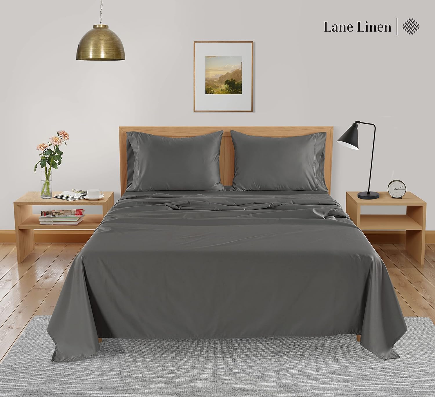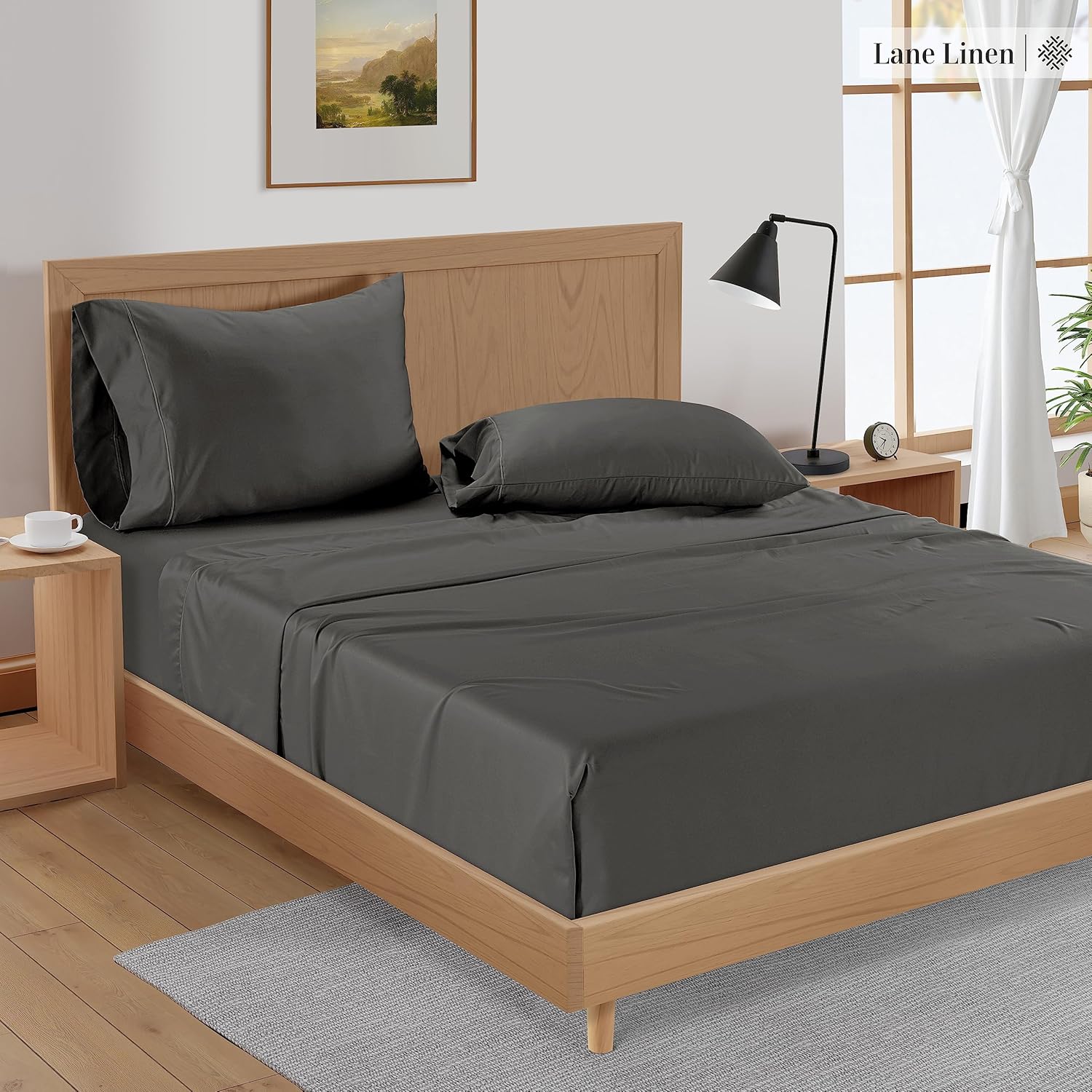 LANE LINEN Bamboo Sheets King – 100% Rayon from Bamboo Cooling Sheets, Breathable Sheets for King Size Bed, Soft King Bed Sheets, Bedding Sheets & Pillowcases, 15″ Deep Pocket Sheet Set – Charcoal