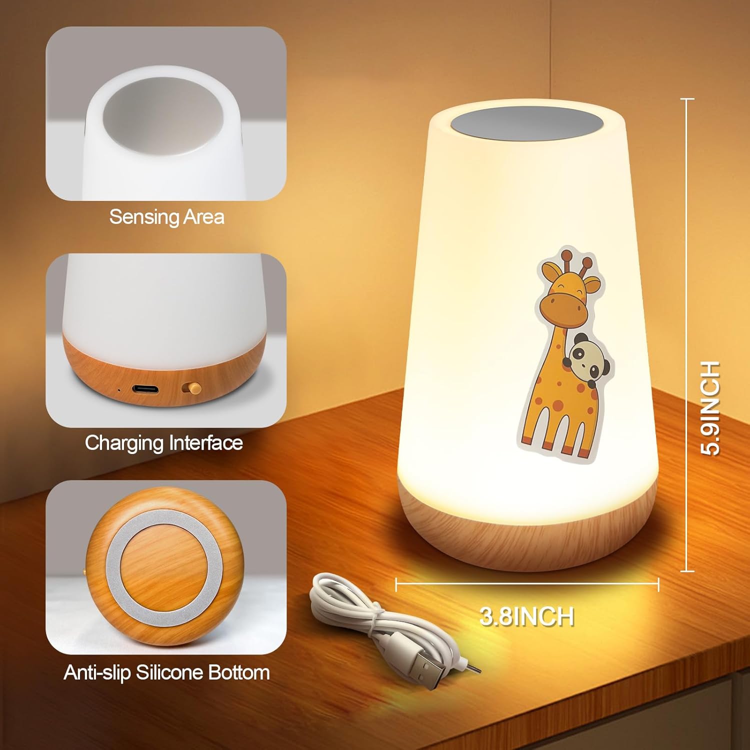 Specification: LED Night Light Bedside Lamp with Animal Stickers Touch and Remote Control, 13 Colors, 5 Brightness Levels, Rechargeable Portable for Baby Kids Nursery Bedroom Living Room Outdoor Camping