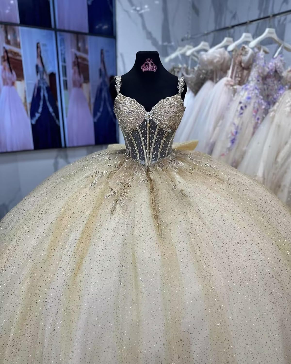Specification: Luxury Beaded Sequins Quinceanera Dresses Appliques Long Prom Ball Gowns Puffy Tulle Princess Dress