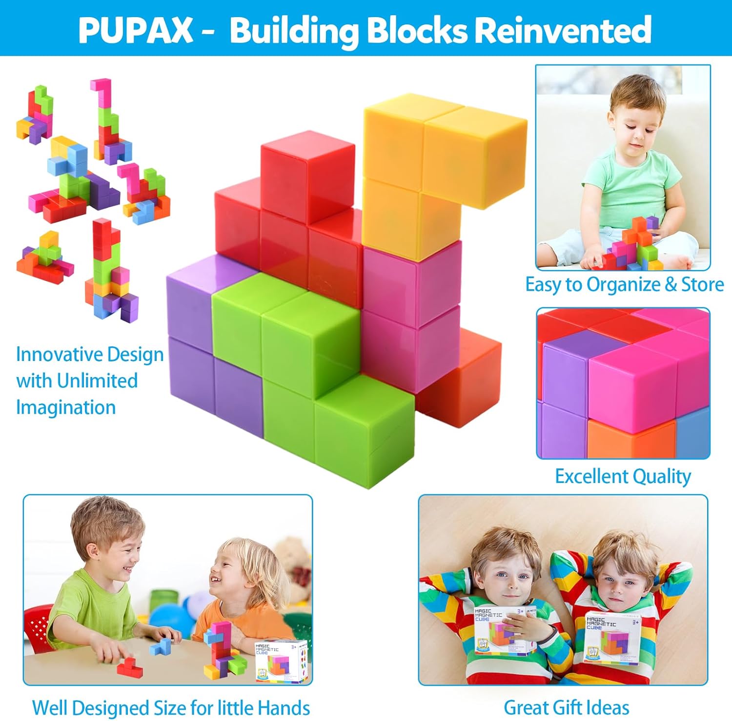 Specification: Magnetic Building Blocks Stacking 3D Puzzle Cubes, 7 Multi Shapes Magnetic Blocks with 54 Guide Cards, Educational Toys for Toddlers, Montessori Toys for Boys Girls