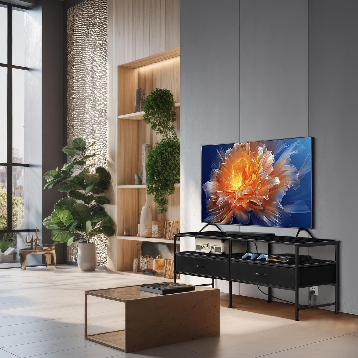 Specification: melos TV Stand for TVs up to 55 Inches, Entertainment Center, Industrial Media TV Console Table with Open Storage Shelves, Television Stands for Living Room, Bedroom, Black